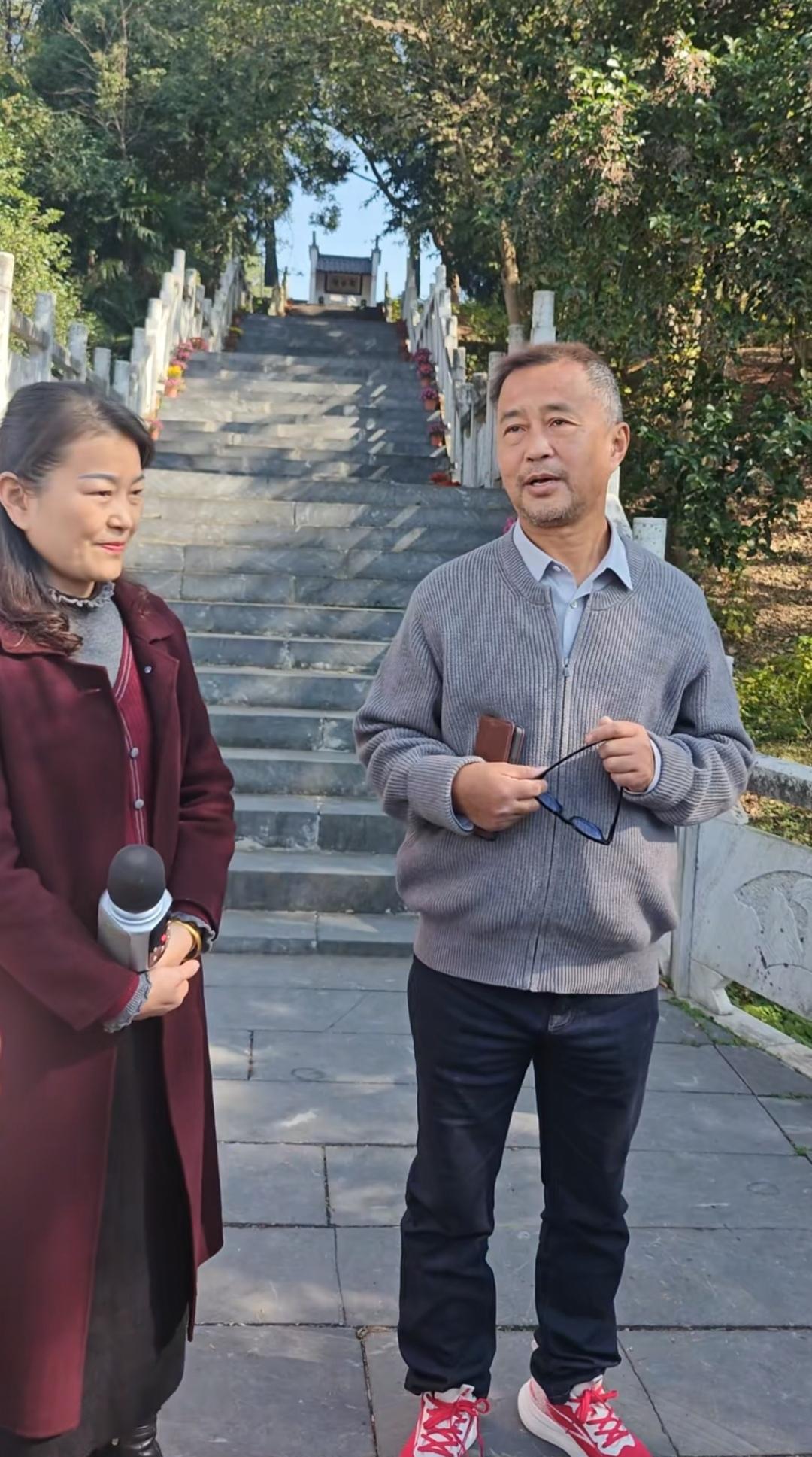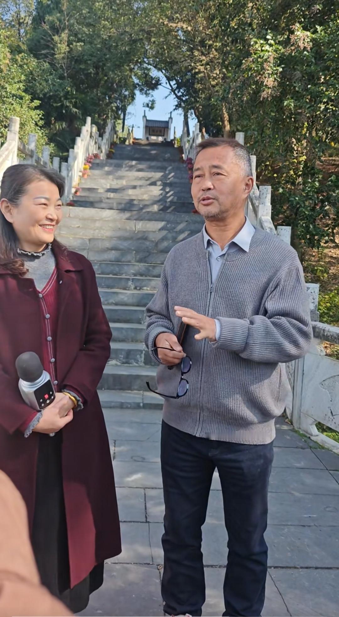 11月22日,博学流浪汉沈巍和南京晓晓结伴而行,从福建赶到安徽,游学陶公祠。 来到安徽,沈巍换了一身新造型,穿着红色旅游鞋,深色牛仔裤,浅蓝色衬衫,外搭灰色毛衣外套,穿的干净了,戴着黑框眼镜,身上的文化味就出来了。站在一旁的晓晓穿的十分优雅,穿着裙子,搭配披肩,挎着黑色包,穿搭很有女人味。 当地安排了一位表达流利经验丰富的讲解员负责讲解,沈巍一行认真听讲,感受安徽的文化气息,并和讲解员合唱了《天仙配》。