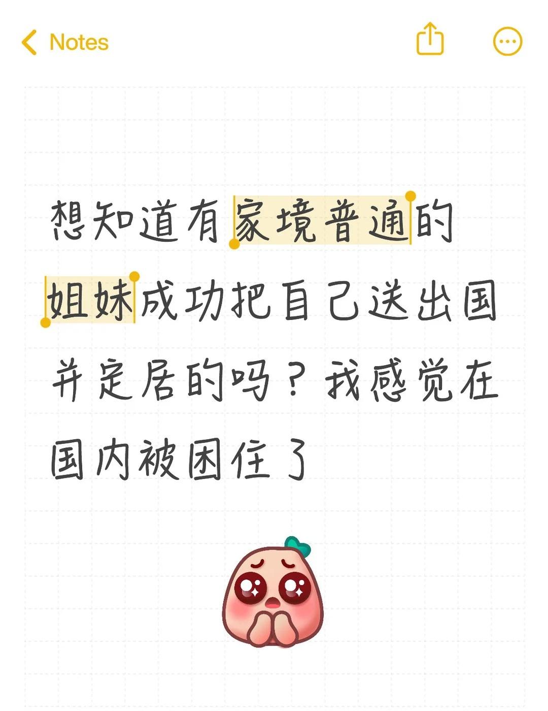 真的需要成功出国的姐妹激励一下我 在大陆我感觉自己被困住,想换个法律对女性友好的环境。我的家族都是重男轻女的,周围都是需要女人结婚生子的传统文化,我深刻的明白结婚付彩礼也只是为了买断女人的生育权和xing权利,普通人根本没有爱都是利益互换,爱是精神非常高级的人才有的。看清这些后我更不想跟这些人去纠缠结婚什么的,所以想把自己送去可以精神同频的地方。想知道家境不好的普通人到底怎么低成本出国并定居的