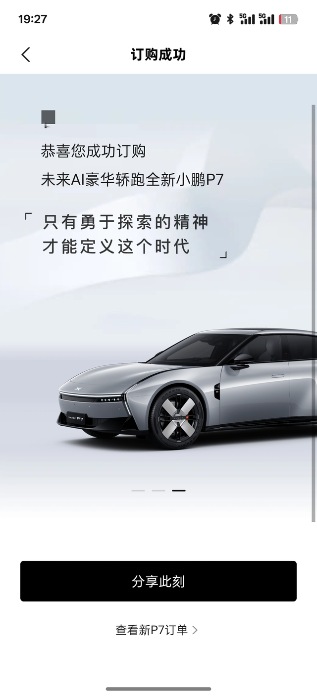 定了小鹏新p7 实车还是银色好看特别是配合轮毂,绿色银色纠结很久,看见实车果断银色。