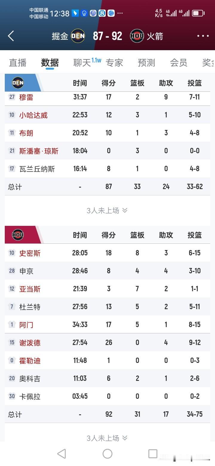 捡到宝了,范弗里特缺阵,谢泼德打出来了。 对掘金,要不是谢泼德的三分球,火箭很可能大比分落后了。 杜兰特 手感一般,目前仅仅13分。 谢泼德目前26分,三分球7中5,成为得分利器,另外还有两次抢断。 看好火箭拿下掘金。