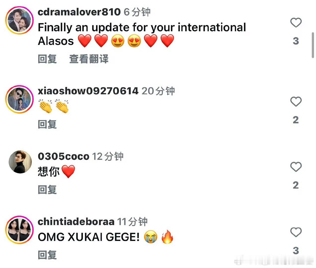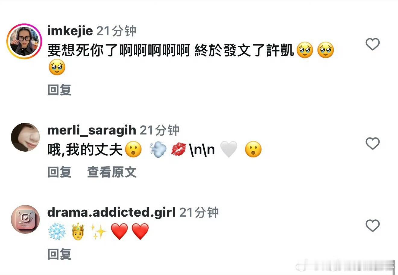 许凯ins更新;海外粉丝评论 :想你,等你很久了!帅哥海内外多营业~大家都爱看