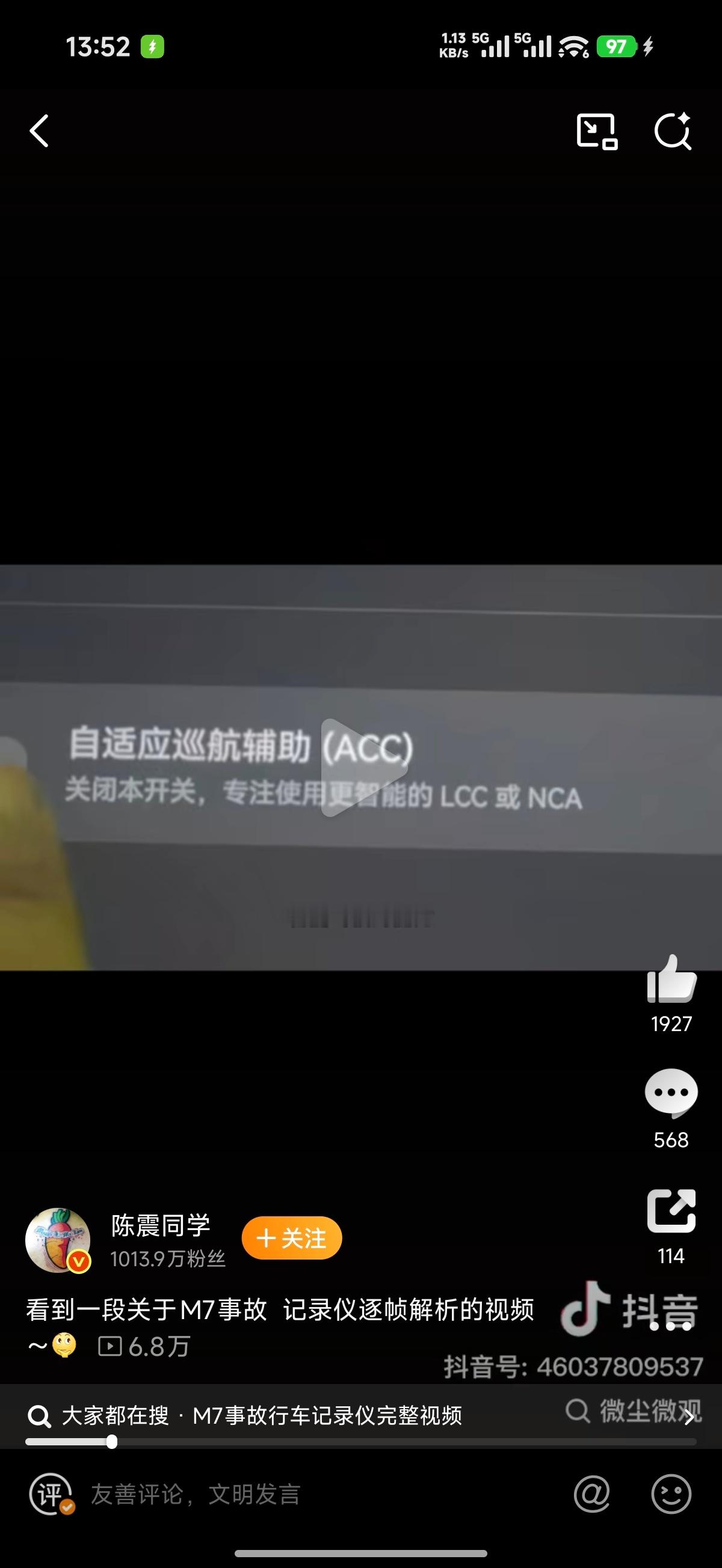 某系头部博主转发了一条抖音视频,视频里写,打开acc,智能驾驶会大幅度降低,导致车祸发生你们觉得他说的对吗