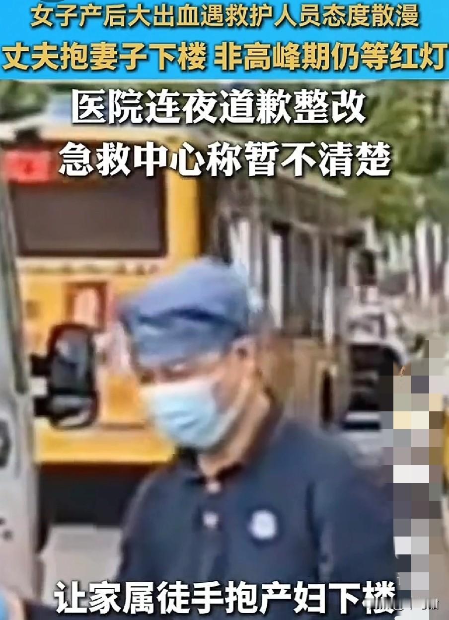 现在的120都不通人情了吗,近日一女子产后16天,在家里突然大出血,拨打120以后,救护人员却散漫的到来。 甚至还让家属自己把病人从楼上抱进车里,本来就是大出血,人很虚弱,120有特权可以加速直达医院,可是该救护车却选择按部就班的等待红绿灯,这和自己打个车去医院有什么区别。 事件曝光后引起了广大网友的质疑,有记者连线医院,对方态度很好,说暂时不清楚具体情况,但医院为这种行为道歉。 120本身是个特殊通道,在病人需要得到救援的时候,可以开辟快速的便捷,可是医疗人员的不慌不忙,甚至也不愿意出手帮助病患的,我是真没见过。 我眼里的120,是下车就直冲冲奔赴有病人的地方,是拿着担架立刻把病人带走的安全感,是司机急匆匆打着警报,在安全的情况下快速通往医院的路上,那是百姓生病时的保护神。 我爸爸有次生病急需转院,不能下地走路,120救护车来的,我跟在后面撵都撵不上他们的车子,这才是人民的120。 (图片来自网络视频) 创作训练营开营啦