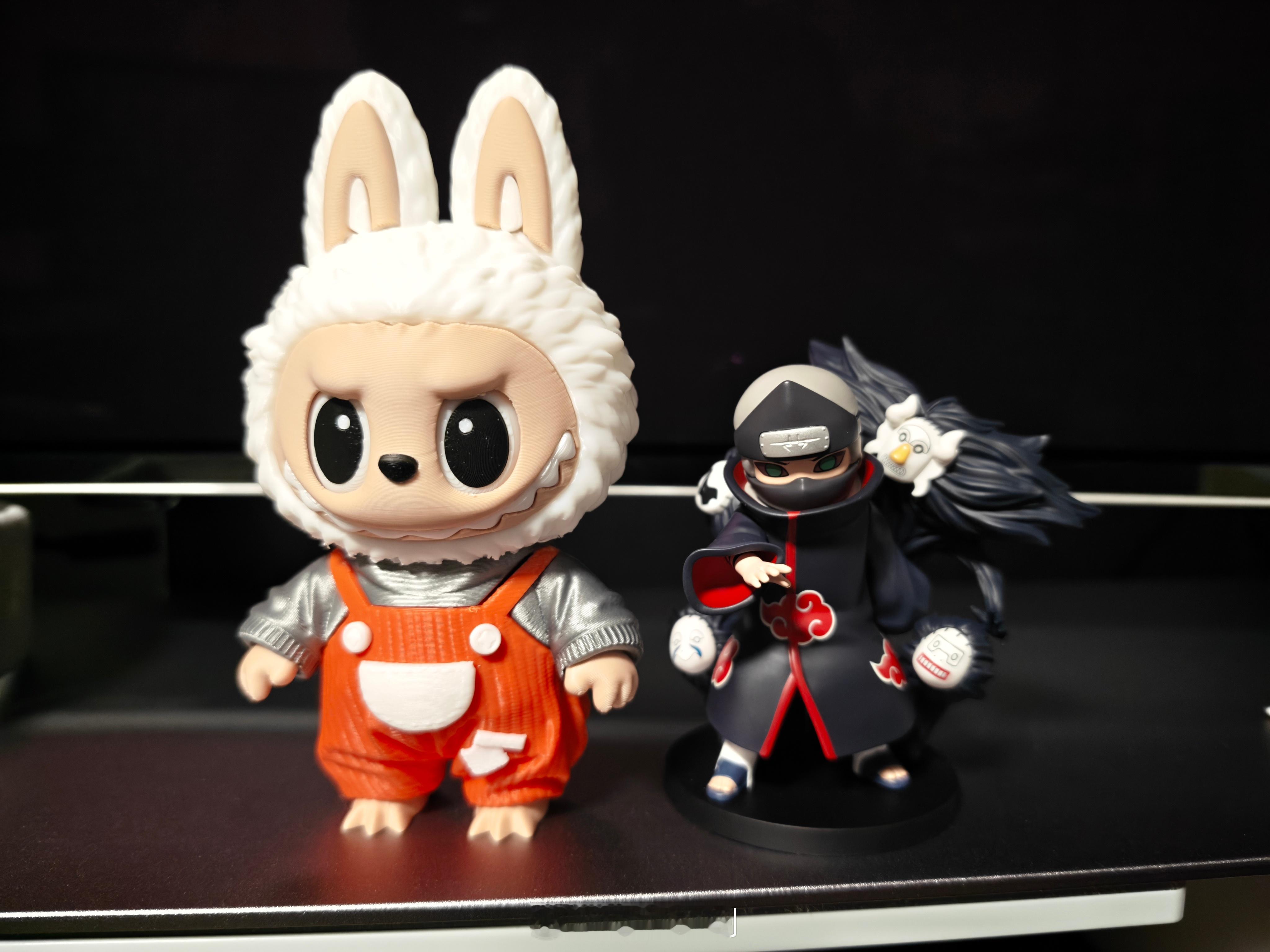 实验基本成功,耗材成本大约20块钱不到。用时大约7-8小时。不是直接打印出来的,是分了多次打印配件,最后组装,用了胶水固定。 放火影盲盒在旁边,参考大小。