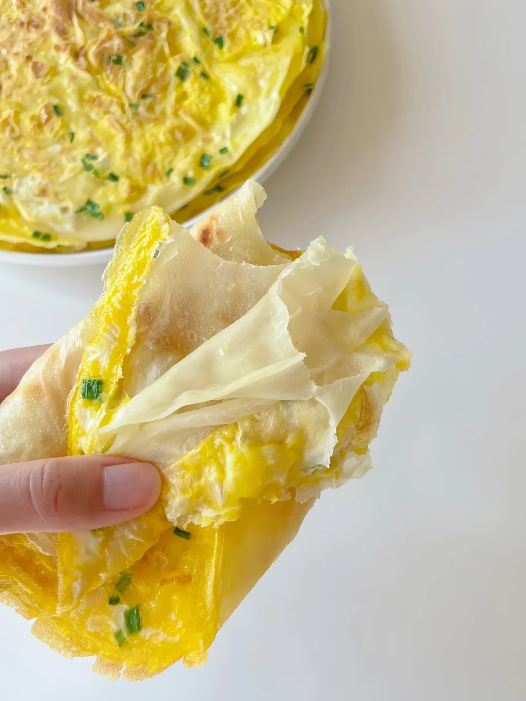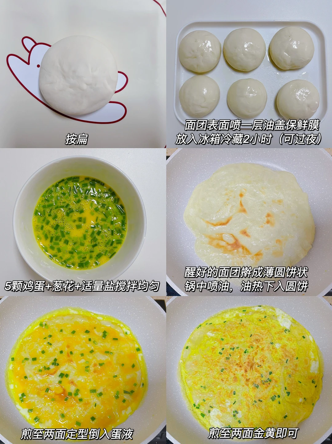 又来给大家分享好吃的中式早餐啦 鸡蛋千层饼,柔软多层,咬下去软乎乎还带点蛋香,凉了都不硬,夹根烤肠或者配碗小米粥,妥妥的元气早餐~ 👩🏻🍳 面团:面粉300g、盐2个、温水180g 油酥:30g面粉、25g热油 🔎具体做法见图