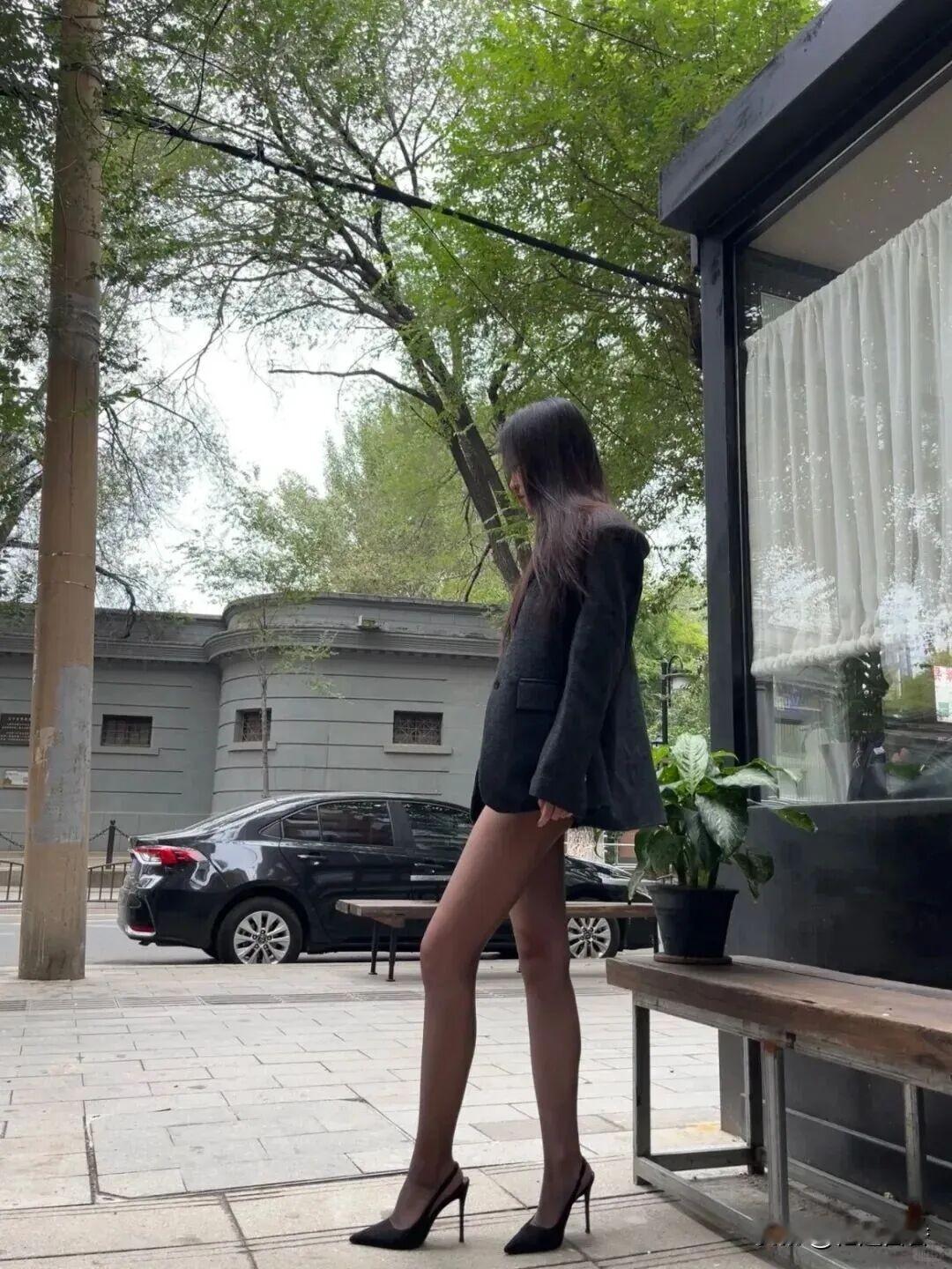 优雅都市女郎,树荫下享受宁静时光