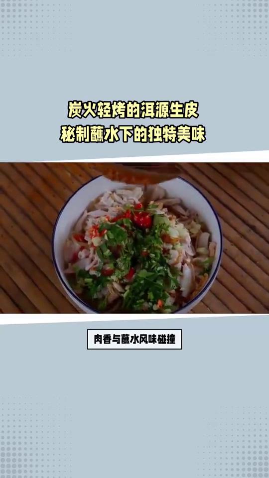 炭火轻烤的洱源生皮,秘制蘸水下的独特美味。 洱源生皮,大理烟火里的鲜醇风味。洱源生皮是大理白族的特色美食,承载着千年饮食智慧。 选用本地散养土猪,经炭火轻烤去毛后,取猪皮、三线肉与里脊肉切成方块或细丝,搭配秘制蘸水,以梅子醋、小米辣、蒜末、香菜等调和,酸香辛辣交织,入口脆嫩弹牙,肉香与蘸水风味碰撞,清爽不腻。 这道佳肴既是白族待客的珍品,也是节庆必备的美味。每一口都藏着洱源的风土人情,尽显滇西饮食的独特魅力,让人尝过便念念不忘。