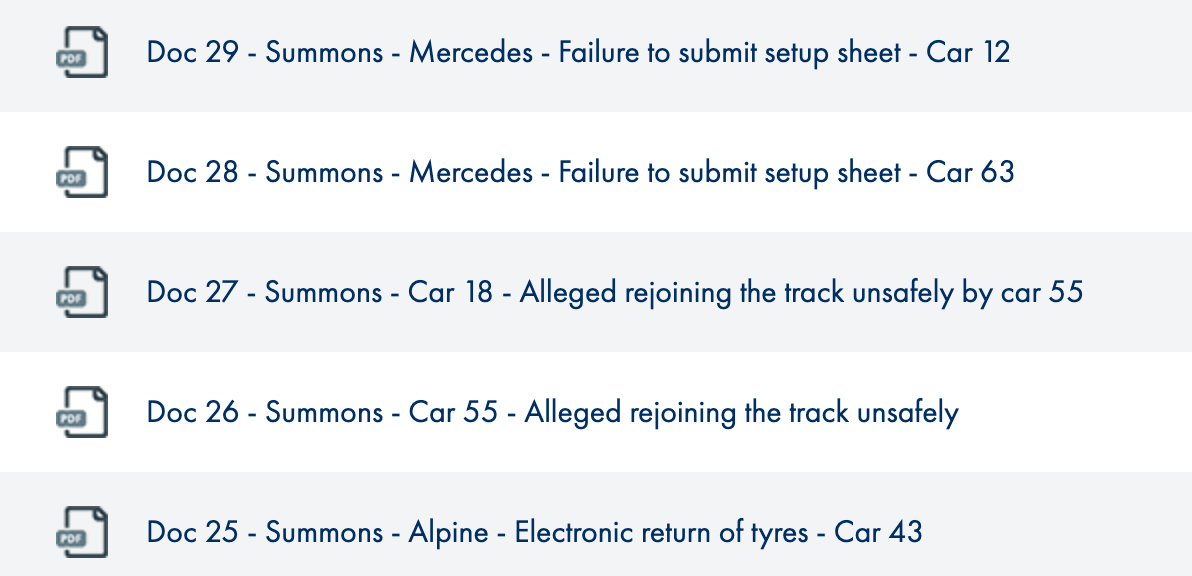 赛后传唤一览梅赛德斯双车未提交设定数据斯托尔、塞恩斯不安全返回赛道科拉平托赛车在三练后未线上提交归还轮胎