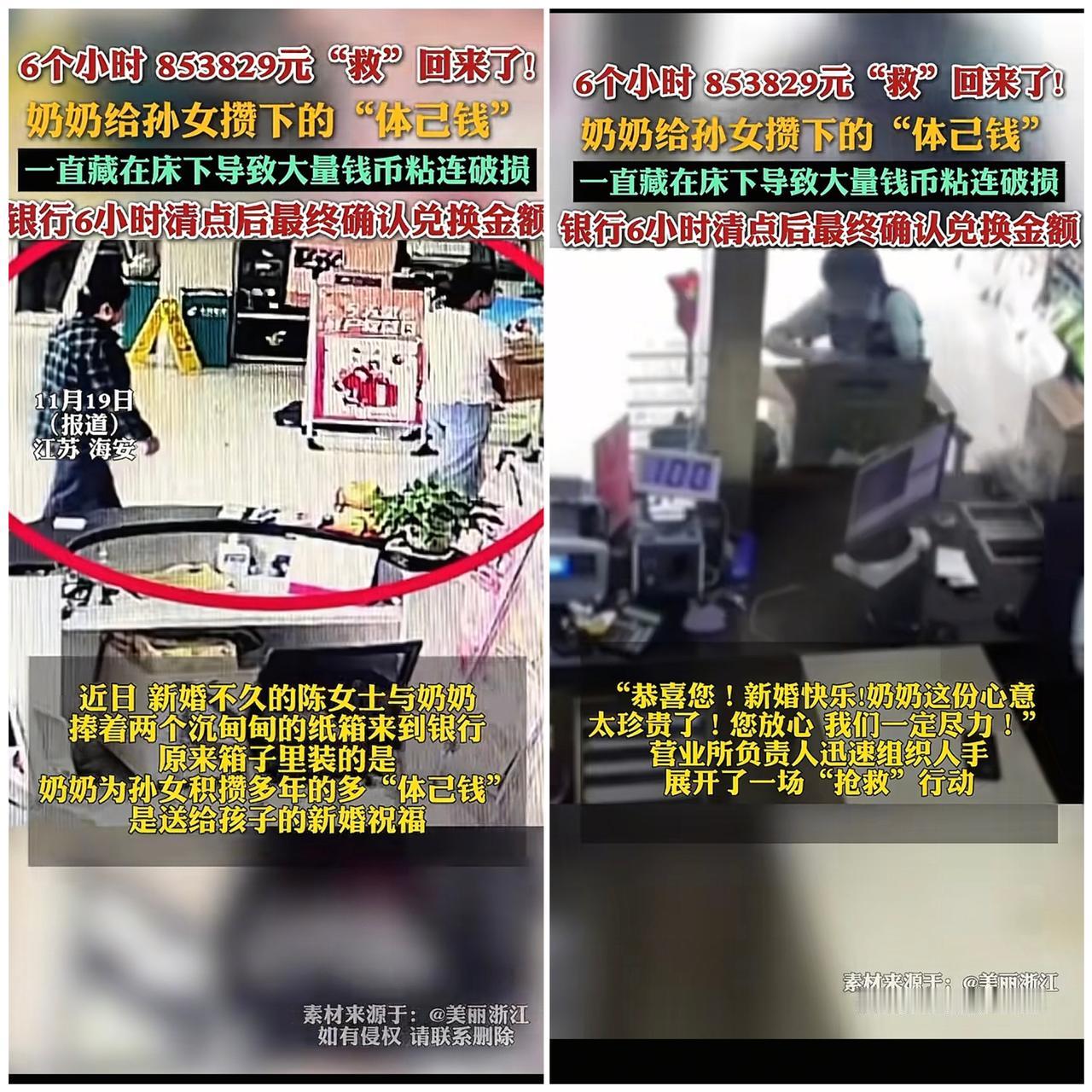 “真的又心疼又庆幸!”江苏海安奶奶藏床底的“嫁妆钱”结成霉砖,银行6小时抢救回8