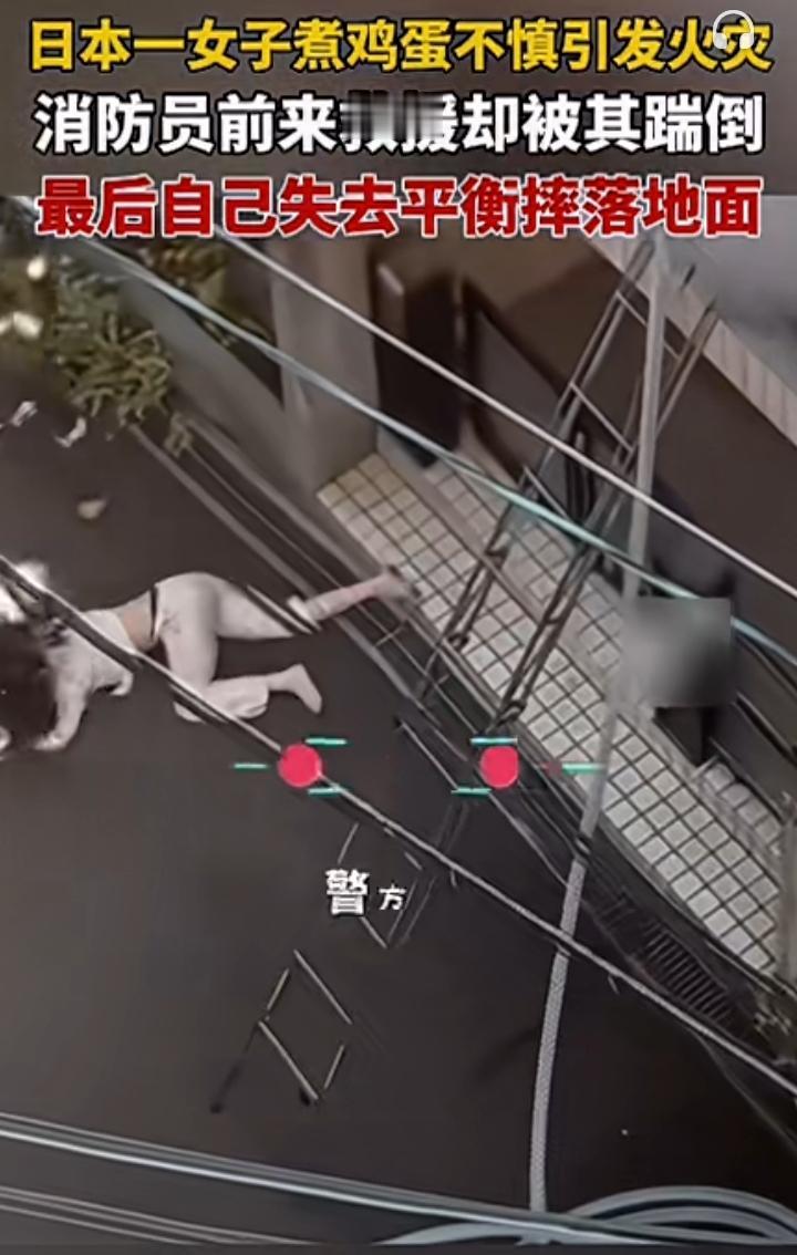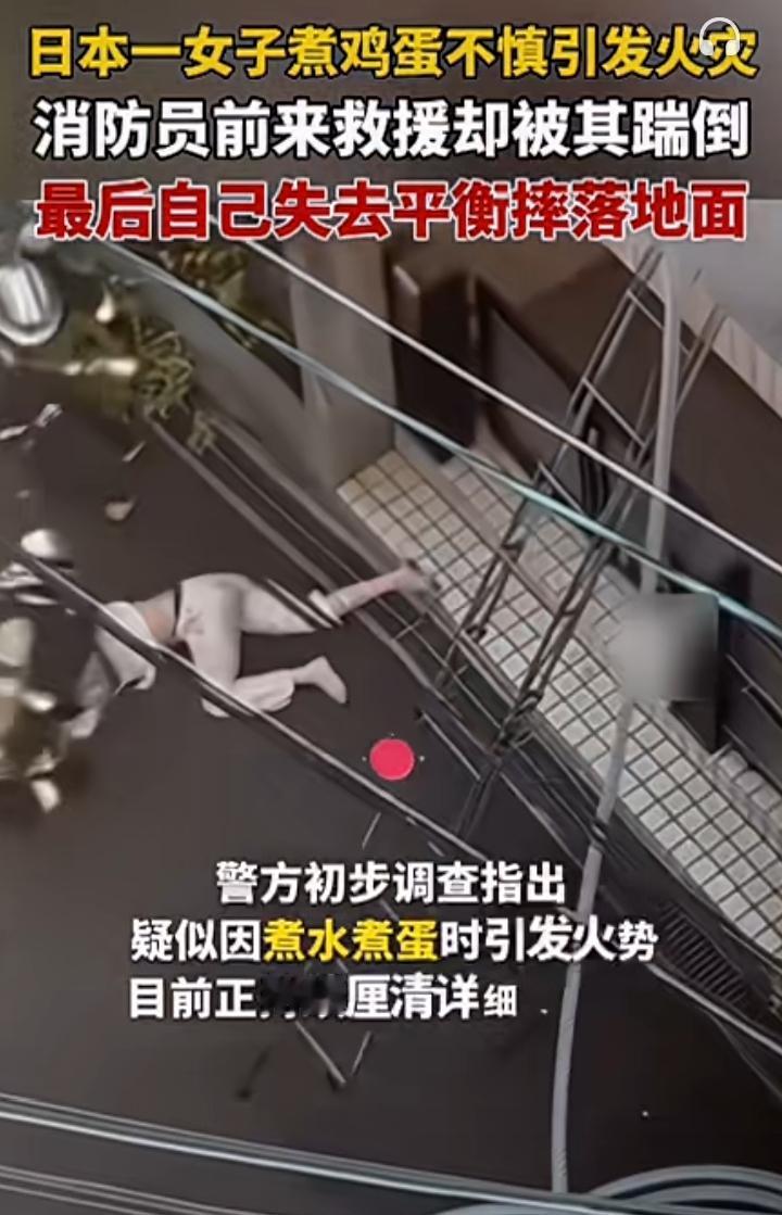 日本大阪一名少妇煮鸡蛋引发火势失控,很快她就被逼落到阳台处一名邻居帮她拨打了11