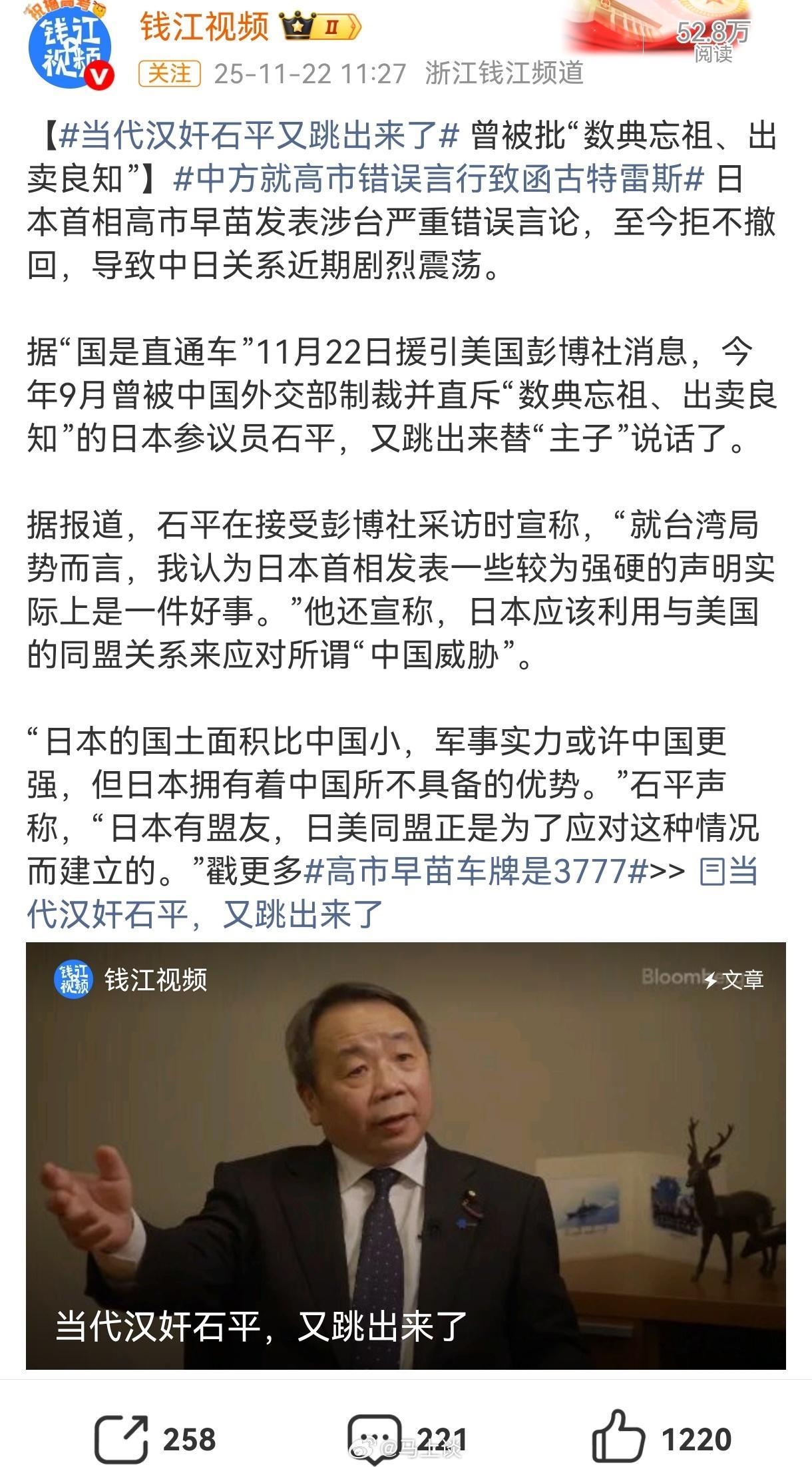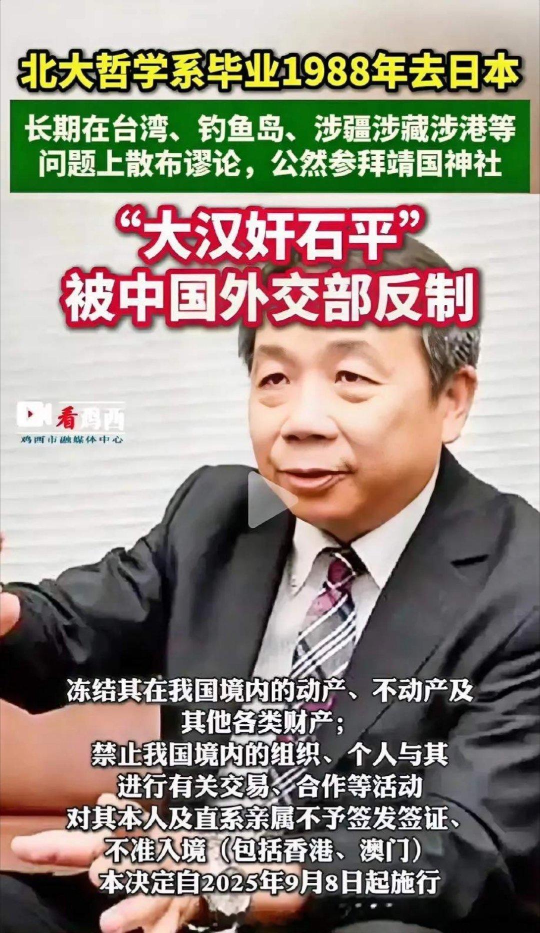 石平这条狗又跳出来配合高市早苗了!这狗杂种但凡有一点点良知,对这个生它养它的土地有一点点的感恩,就说不出这样的话!对他这种狗汉奸,只能物理消灭!
