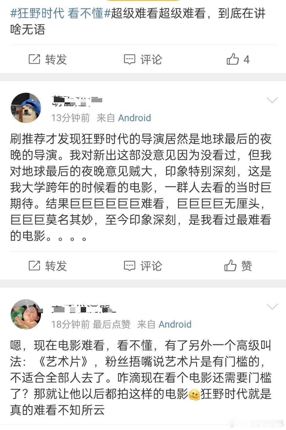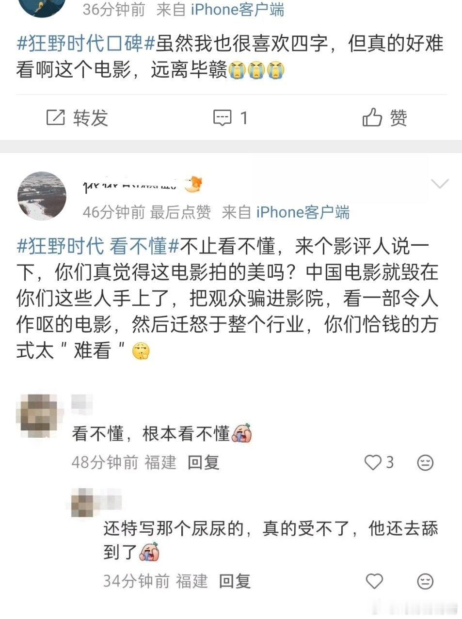 观众说文艺片看不懂,连粉丝也直呼难看,让易烊千玺远离导演毕赣,还说年度最难看的电影《狂野时代》和胡歌《三滴血》都和烂片挂钩了