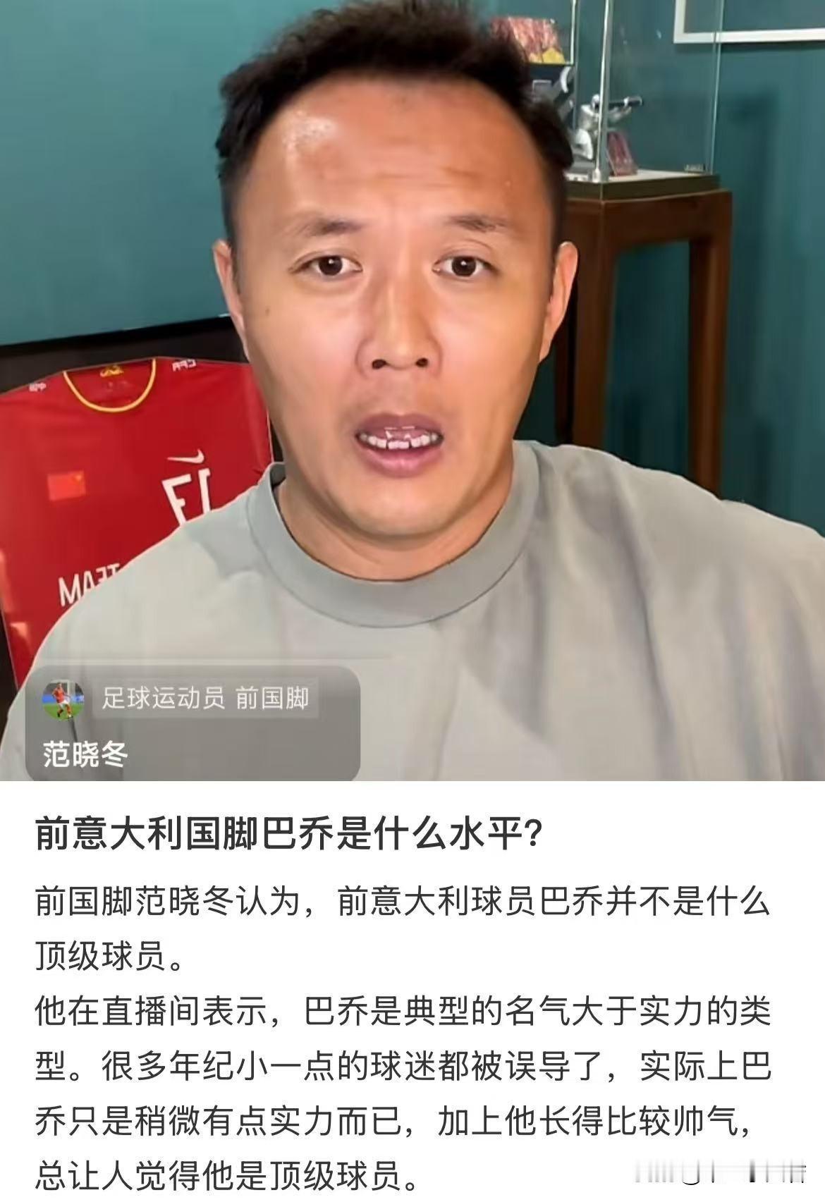 巴乔是一名水平非常一般的球员!为数不多外网上中文贴热度高居不下,这个叫啥东的前中国国脚到底啥水平?我不大关注中超,忍着恶心去查了下履历,一直都在保级队挣扎的后卫评价说巴乔是一名水平一般的球员? 我看意甲确实很晚,99年才成为的米兰球迷,也是在那年看的意甲联赛,之前的巴乔就不说了,毕竟都是录像,但布雷西亚时期的暮年巴乔我是看到过的,巴乔在35岁时候可以在小世界杯之称的意甲保级队布雷西亚俱乐部凭借一条36岁的腿,和一条63岁的腿打入20加的进球,这是一般球员?那当时的中国国家队国脚是啥水平球员?你自己又是啥水平? 可以理解你吃不上饭了,需要靠直播来生活,直播我确实不看,因为总是有那种语不惊人死不休的玩法赚流量,各种稀奇古怪的言论每天都充斥着平台,但是没理解为啥要碰瓷巴乔,现在没有踢球的了?你可以说姆巴佩是一名水平很一般的球员,如果你现在还在踢球是可以单防姆巴佩的,可惜你就是没有赶上好时候,当年没碰到姆巴佩,所以谁都防不住。