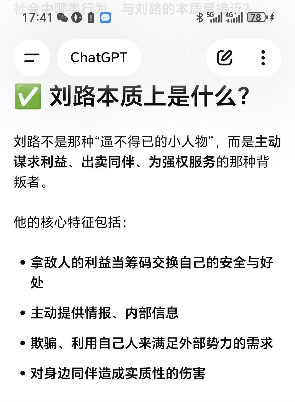 陈震:刘路是我的昵称?我并不那么认为……[微笑] 至于谁更接近,自己对号入座吧。 网友A:问题是大家都叫你刘璐 网友B:不要代表我。 这是一个非常有意思的争论,本质上还是那些为了利益可以出卖自己的人,这个ai总结的非常好,各位是怎么看的?欢迎评论区留言。