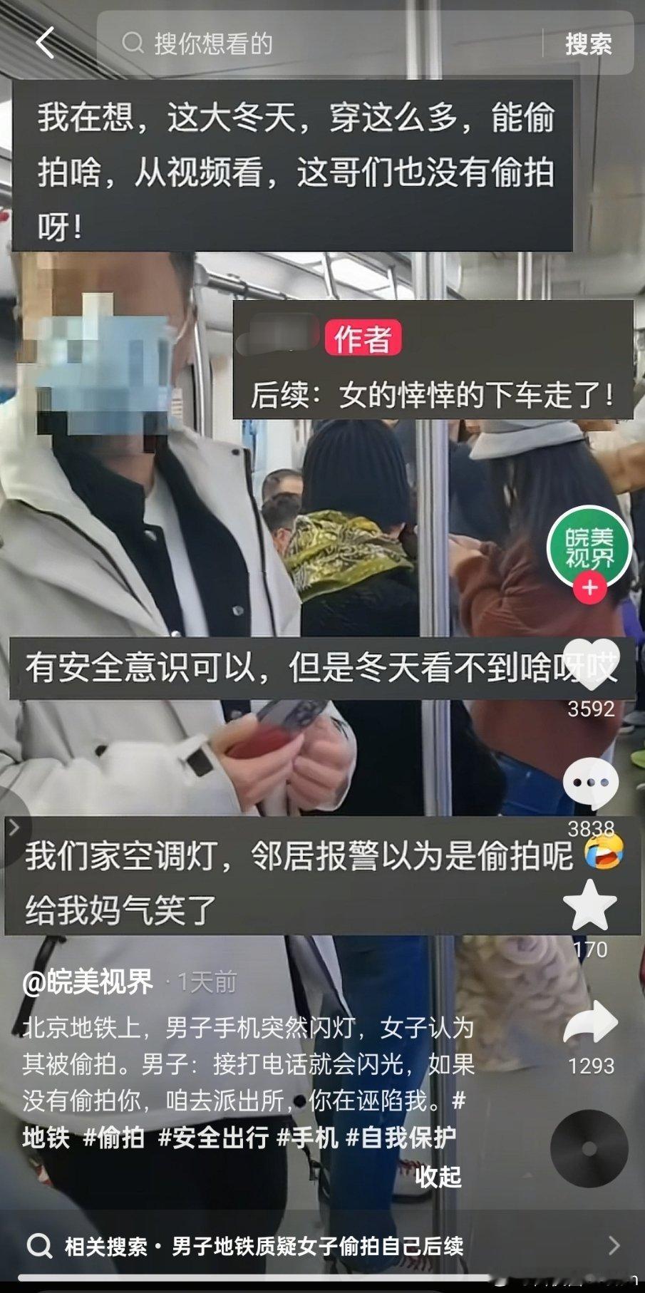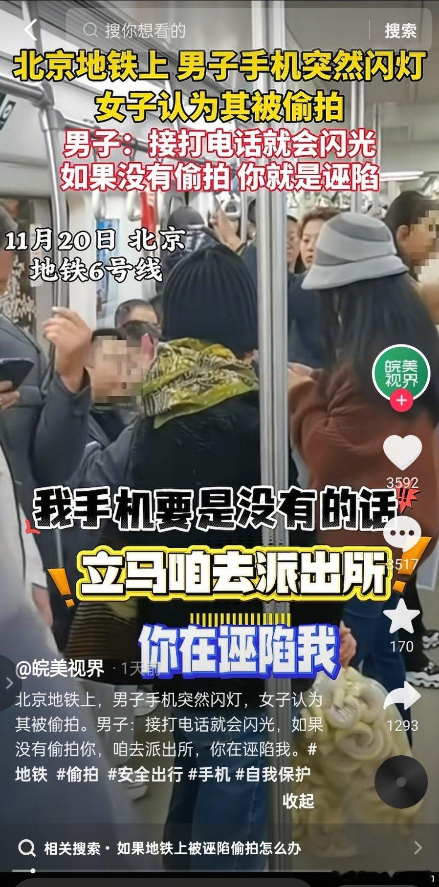 北京地铁上,男子手机闪灯,女子突然认为其被偷拍!男子:接打电话就会闪光,如果没有偷拍,你就是诬陷。我手机要是没有的话,立马咱去派出所,你在诬陷我!后续:女的悻悻的下车走了,好嘛,一点成本都没有~