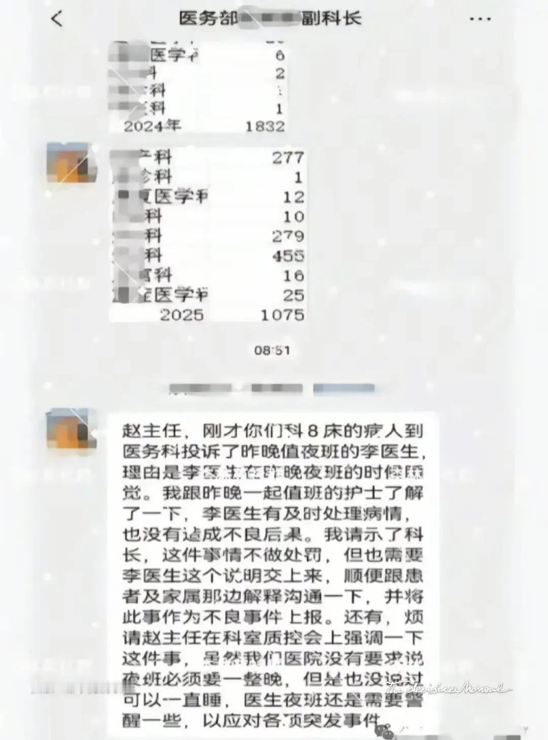 患者要求医生有医德,患者自己却没有人德。 投诉医生夜班睡觉[捂脸] 如果晚上有处置的病人,那医生定不能睡,没有病人的时候,为啥医生就不能歇歇呢? 医生下夜班后还得查房,处理医嘱,有的医生还得出门诊,有的还得上手术! 大家希望第二天医生昏昏沉沉的吗? 有点同理心吧,要不以后更没人愿意当医生,看最后受害的是谁?