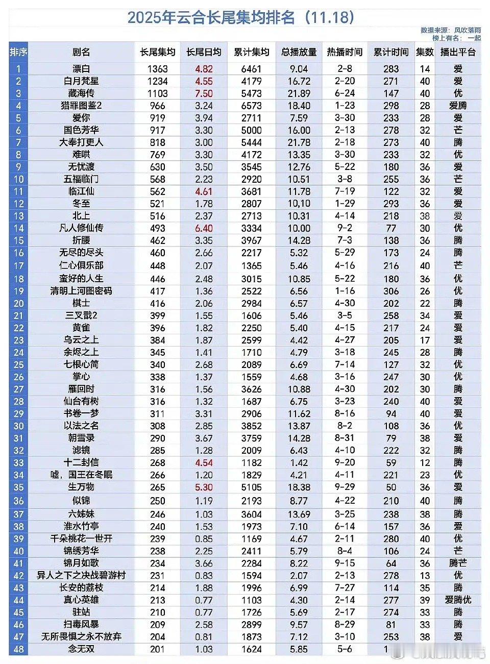截止25年11.18张凌赫的《爱你》累计集均已2711,长尾集均现偶第一,就这个何苏叶伟大吧