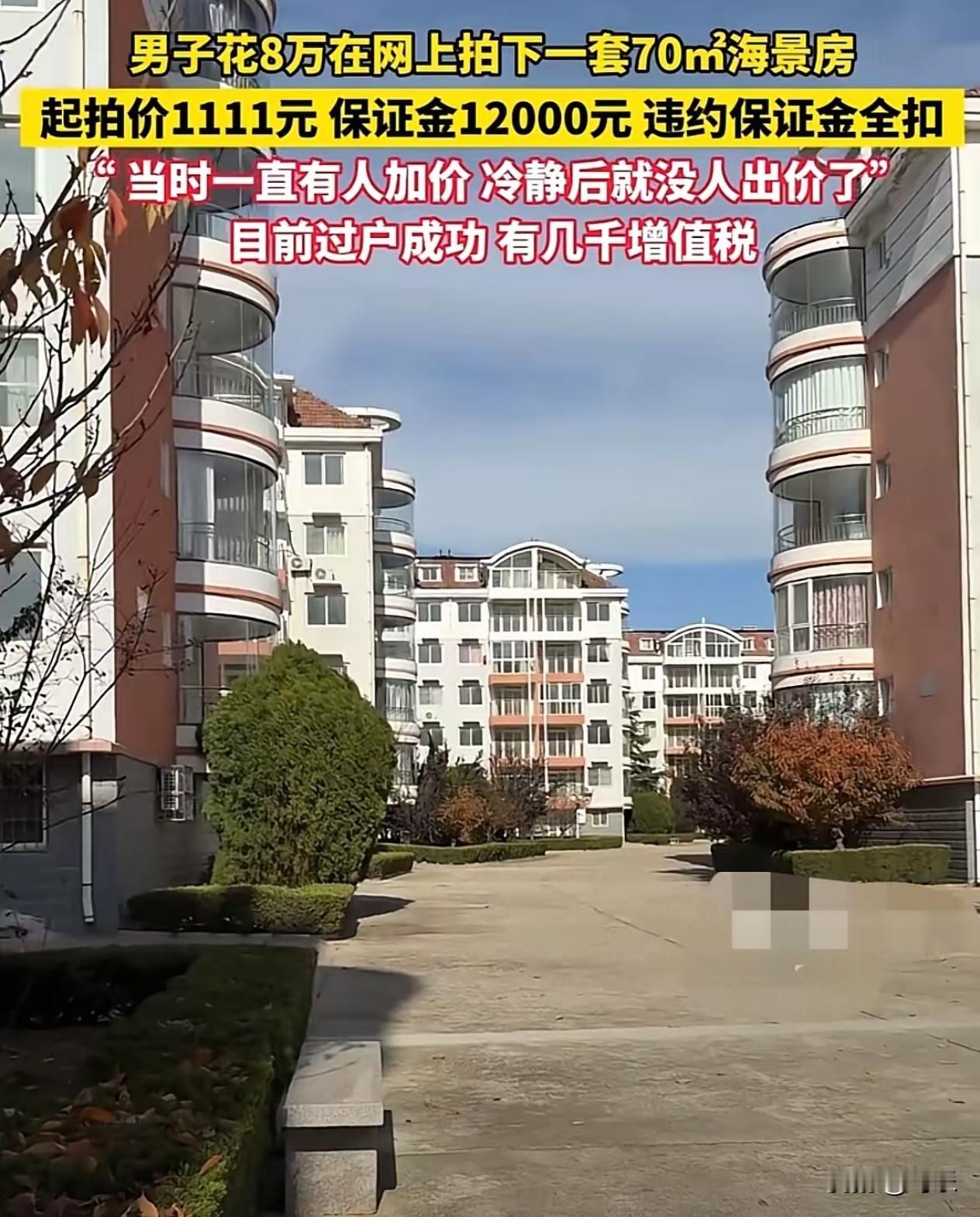 这胆量真没谁了! 河南一男子竟花8万多,从网上竞拍拿下一套乳山海景房,光单程过去就得跑900公里,网友纷纷直言:这房怕是要砸手里了!据男子的爱人透露,这套房的拍卖过程透着蹊跷。 男子竞价时,总有几个账号跟着加价,一路加到7万多,男子不想再往上加,可他一停手,其他账号也跟着停了,最后男子只能无奈拍下。 网友看完直呼不对劲,猜测那些参与竞拍的账号大概率是电脑操控的“托儿”,整场竞拍可能就男子一个真人,目的就是把价格抬上去。 有乳山当地人介绍,这类海景房根本不适合长期居住——冬天没暖气,夏天又潮湿难耐,顶多适合短暂度假,一年住不了十天半月。而且周边配套设施跟不上,就算想出租都没人要。 乳山海景房空置率常年超70%,2024年二手房挂牌量同比涨30%,8万成交价看似便宜,后续装修、物业费每年至少5000元,远超当地租房成本。 全国法拍房溢价率平均仅5%,但海景房常被“托儿”抬至15%以上,有数据显示近三年这类竞拍纠纷增长率达40%,多因购房者未实地考察。 海景房流通性极差,乳山同户型房源平均挂牌18个月才能成交,部分房源降价20%仍无人问津,远低于普通住宅6个月的流通周期。 网上竞拍需多留个心眼,低价背后往往藏着居住缺陷或隐性成本,实地核实房屋状况、了解当地市场数据,比盲目跟风竞价更靠谱。