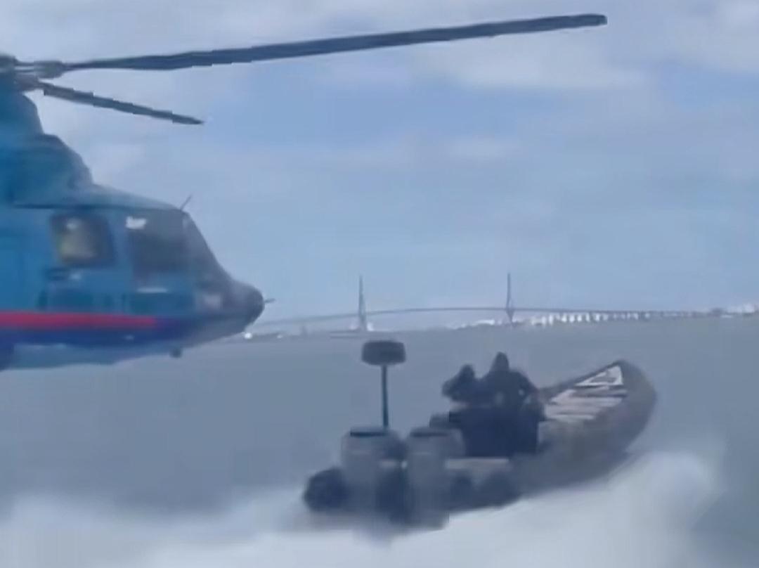 9月12日西班牙海关干了一件超惊险的事国外社交媒体上流传着一段超刺激的视频,是西班牙海关在加的斯附近海域拦截一艘运毒船的画面。 视频里西班牙海关的直升机几乎是贴着海面在飞,就像在海面上跳舞一样和运毒的快艇离得特别近,感觉伸手就能碰到。那些快艇上的毒贩也真是胆大包天,居然还伸手去抓直升机,简直太嚣张了要知道,直升机飞这么低可是非常危险的,这对飞行员的技术要求高得没法说。 直升机的驾驶员得全神贯注,眼睛都不敢眨一下时刻盯着海面和毒贩的快艇,还得控制好直升机,不能出一点儿差错。下面的海水波涛汹涌稍微一个不小心,直升机就可能被海浪卷进去,或者被毒贩的快艇撞到,真是太惊险了