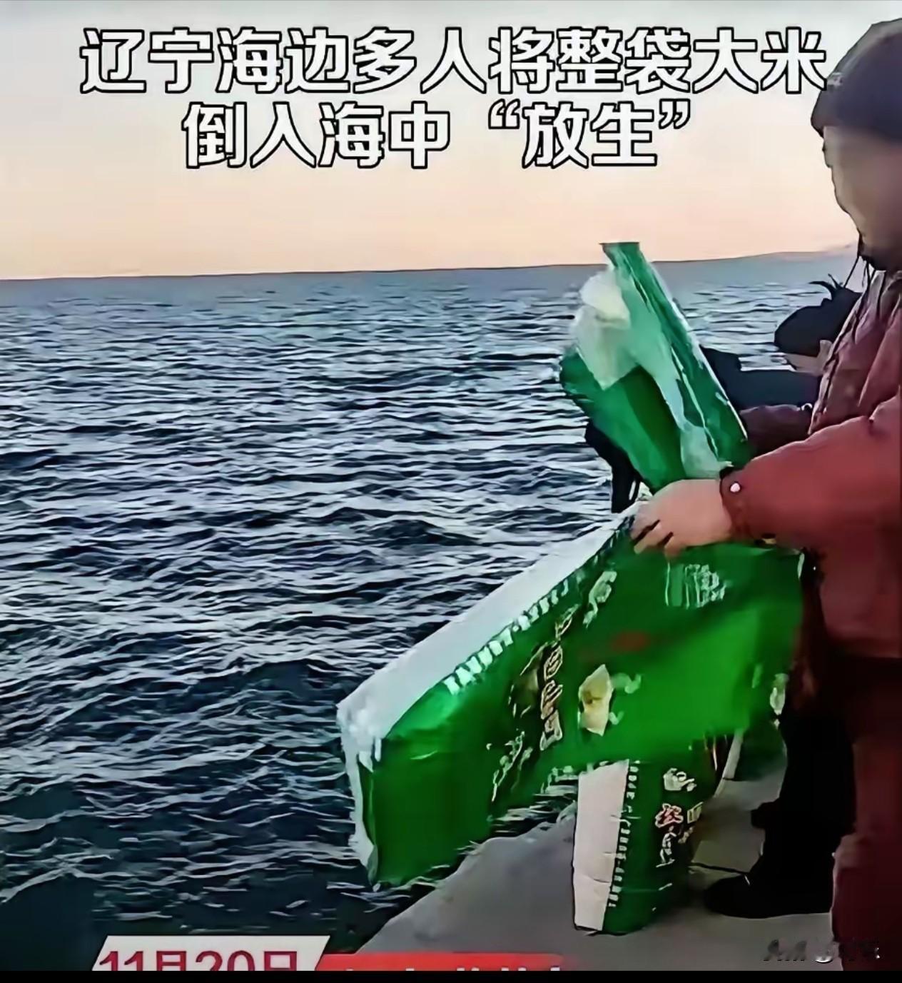 这真是吃饱了撑的! 据报道,辽宁葫芦岛有多人往海里倾倒大米,口中还念念有词,声称这是“放生大米”。 其实这类放生大米的事早有报道,并非孤立偶然的个案。 改革开放后,社会的自由度与包容性不断提升,但与此同时,一些打着各类教义旗号的歪理邪说也趁机冒了出来,像污泥浊水般冲击着不少人的世界观、人生观和价值观,带来诸多负面影响。 老话常说“温饱思淫欲”,物质生活富足后,部分人反而陷入思想与精神的空虚混乱,连勤俭节约这样的传统美德也受到了巨大冲击。 往海里放生大米,实在是愚昧又无知的行为。三观正的人绝不会做这种荒唐事,要是连饭都吃不饱的人,更不可能如此挥霍粮食。 我国每年浪费粮食超3500万吨,足够1亿人吃一年,而“放生大米”这类行为,本质是对粮食资源的恶意浪费。 海洋专家指出,大量大米入海会导致海水富营养化,滋生有害藻类,破坏海洋生态平衡,类似案例已造成多地近海渔业减产10%-20%。 数据显示,近五年全国因“不当放生”引发的生态纠纷增长58%,不少行为不仅违背公序良俗,还涉嫌违反生态保护相关规定。 浪费粮食从不可取,打着“放生”旗号破坏环境更该抵制。精神富足该靠正向价值观支撑,而非被歪理裹挟,糟蹋资源最终只会害人害己。