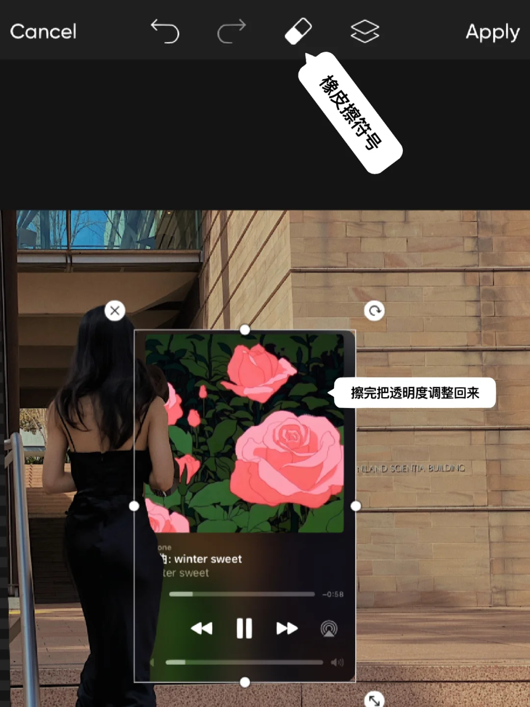 ▪️调整橡皮擦大小和边缘 小心一点把不要的区域擦掉 擦完把透明度调整回来(图15)就可以啦[喝奶茶R]