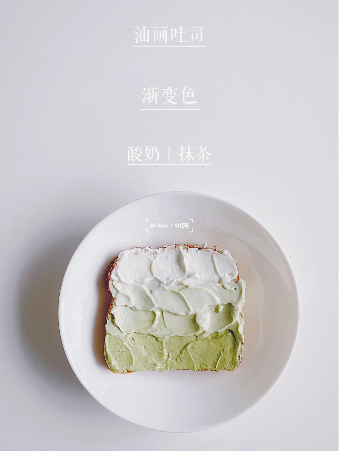 2️⃣用刀把酸奶按颜色抹在吐司上,就可以制作成油画吐司或者鱼鳞吐司一样(也可根据大家喜欢的样子涂抹,图4⃣️)