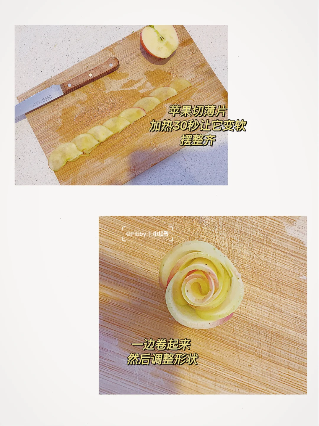 3️⃣把苹果切薄片,一定要薄,然后苹果片放入碗中加热半分钟使它变软[微笑R][微笑R]