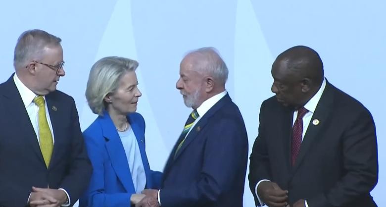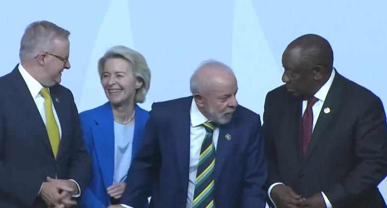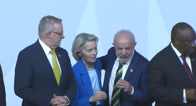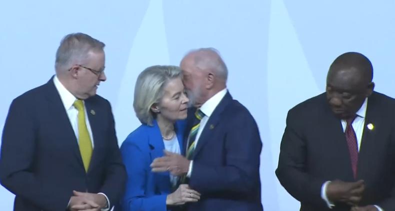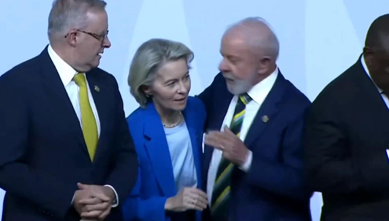 11月22日,巴西总统卢拉和欧盟委员会主席冯德莱恩聊的太开心了! G20峰会大合影的时候,欧盟委员会主席冯德莱恩本来没有和巴西总统卢拉站在一起,可是不知道冯德莱恩突然想到了什么,立马去和巴西总统卢拉说话去了,两人聊的非常贴心,巴西总统卢拉还握住冯德莱恩的双手,并贴在冯德莱恩耳朵上说,这个时候,英国首相看到两人这样聊天就有点迷惑了。不得不说,这个时候聊天真的是有点不太合适,有什么话合影结束之后,或者其他时间足够了,可是偏偏要在这个时候热聊,给人一种自己有多忙,或者多有人缘一样。
