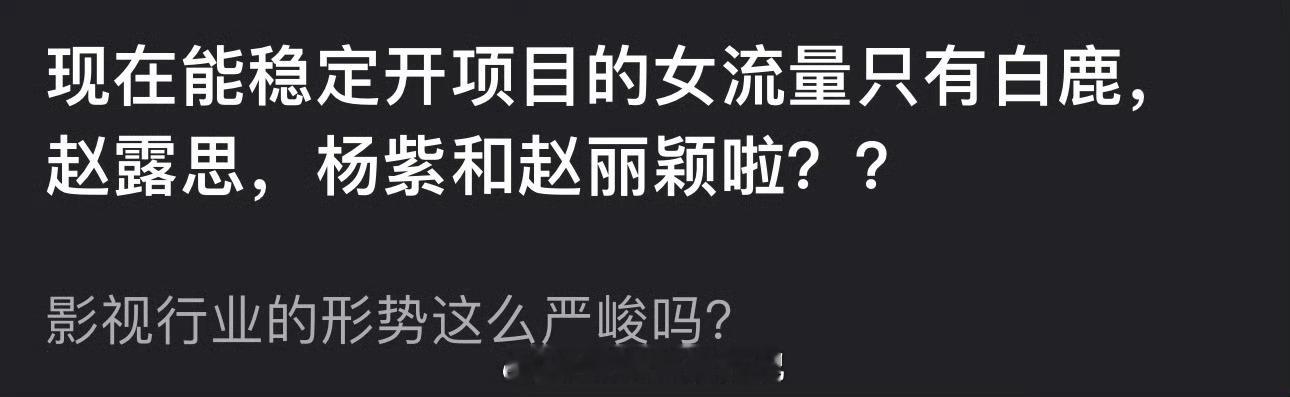 现在能稳定开项目的女流量是不是只有白鹿,赵露思,杨紫和赵丽颖了?