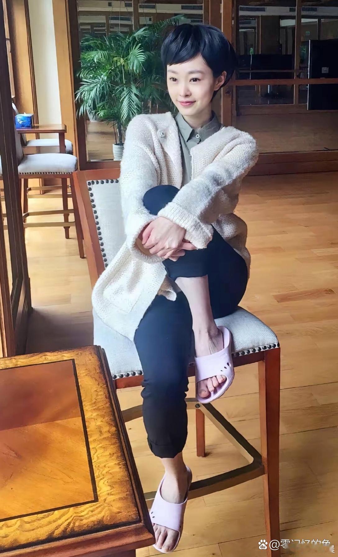 陈数脚趾头修得整整齐齐,美甲精致脚型好看,太亮眼了