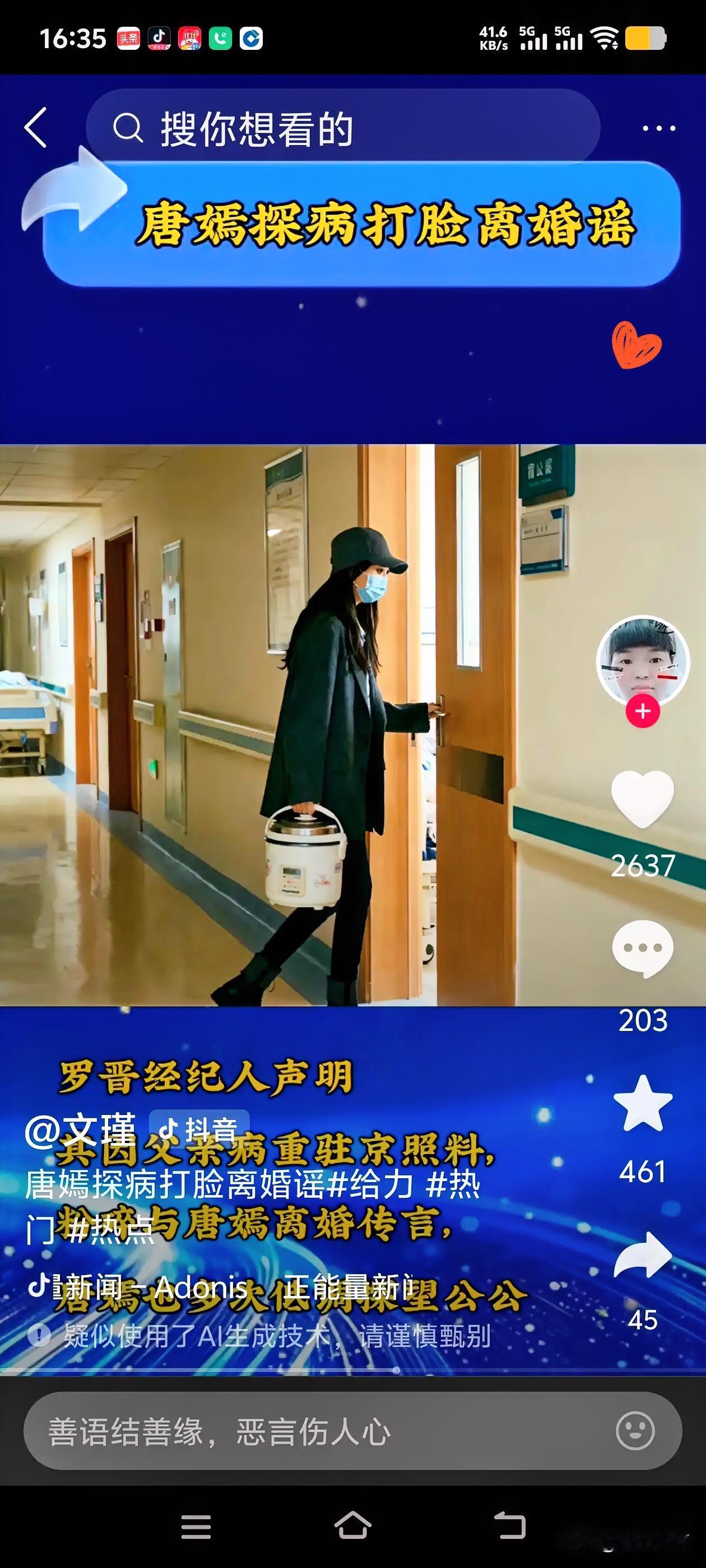 唐嫣提着一个硕大的电饭煲去探视重病的公公!就这一个镜头就粉碎了夫妻离婚的谣言。 没什么比实际行动更有力——分居离婚传言传了好久,连我都差点被带偏,结果人家提着亲手炖的汤去医院,这份踏实孝顺根本装不出来。 娱乐圈诱惑多,婚姻本就难坚守,何赛飞把工资全交老公存着稳信任,唐嫣用细节护家庭,都是经营感情的智慧。 可总有人为了流量无端造谣,不仅毁艺人形象,还传递恶意。 媒体人该多晒这种恩爱正能量,而不是靠拆散人家赚噱头。 罗晋《侦察英雄》里的硬汉形象圈粉,唐嫣《繁花》的角色可爱,戏外恩爱更该被祝福。 你还知道哪些被造谣的明星夫妻?来评论区为他们正名~唐嫣