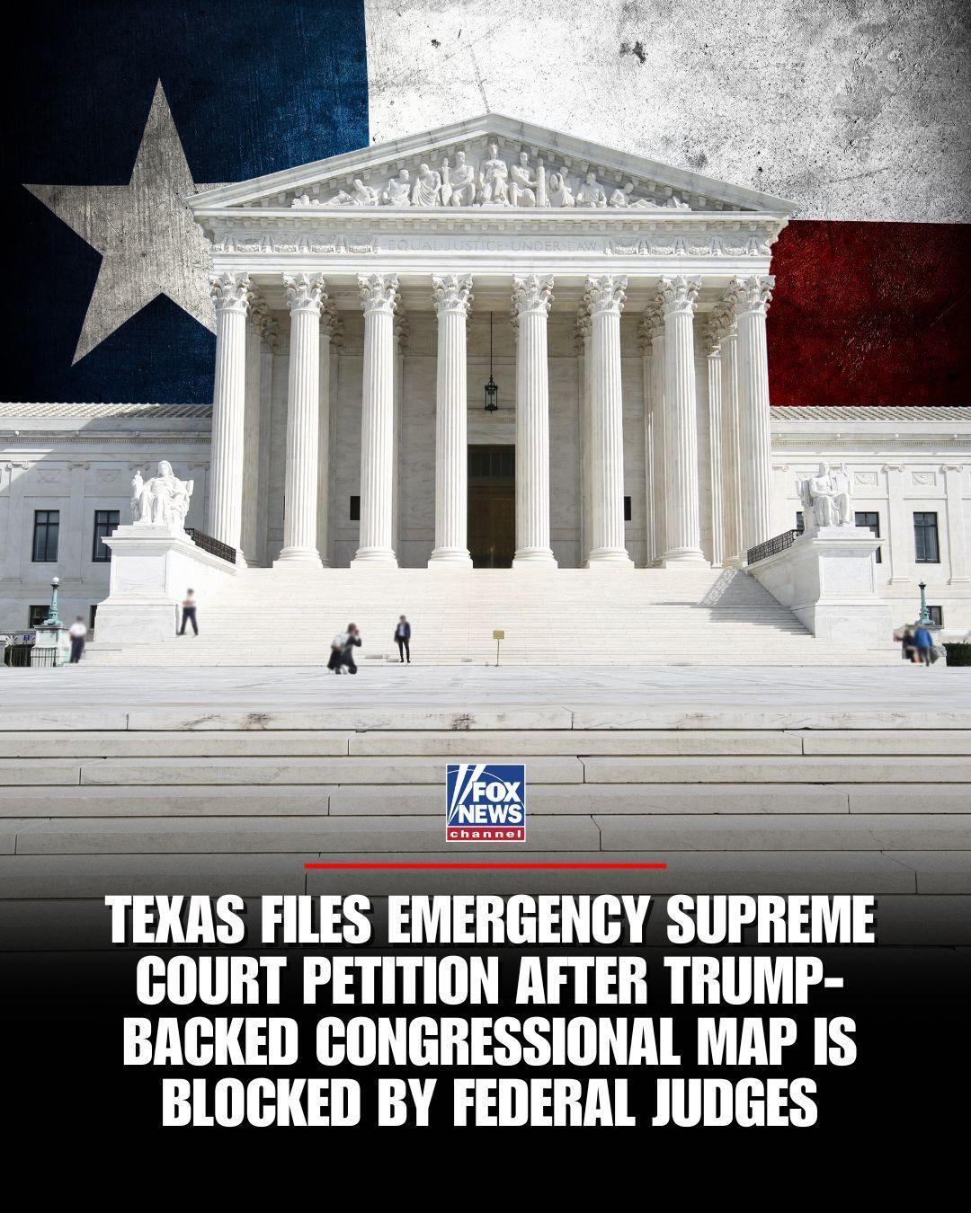 “别惹德克萨斯:孤星之州恳请最高法院介入,此前联邦法官以‘存在种族操控选区划分’为由,驳回了该州新的国会选区地图。” “德克萨斯州于去年夏天在特朗普的支持下重新绘制了这份地图,此举或能让共和党在明年的中期选举中再多获得五个席位。”