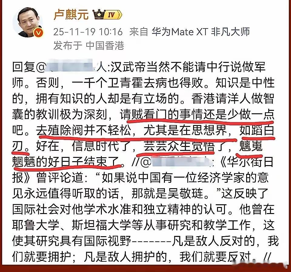 知名学者卢麒元社交平台发声,直指财税领域掠夺乱象与金融系统失序问题,批评部分势力