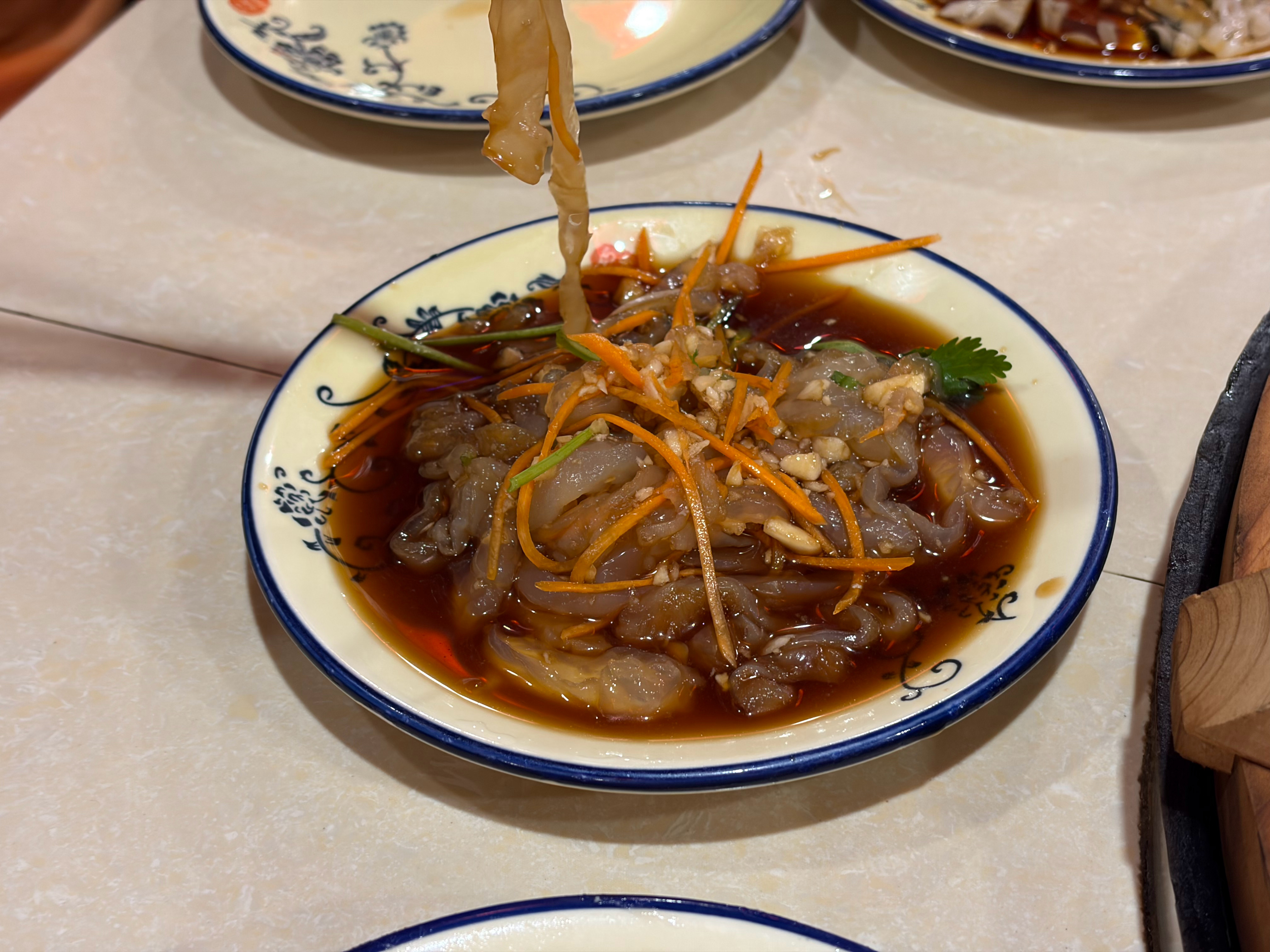 晚饭吃了一顿王老六铁锅炖,真香啊他家这个老醋蛰头一绝,凉菜必点来吃过两次了都是点的小嘎鱼,一人一条,我们四个人点了四条,贼嫩~贴饼子也很脆,但是我最爱吃玉米