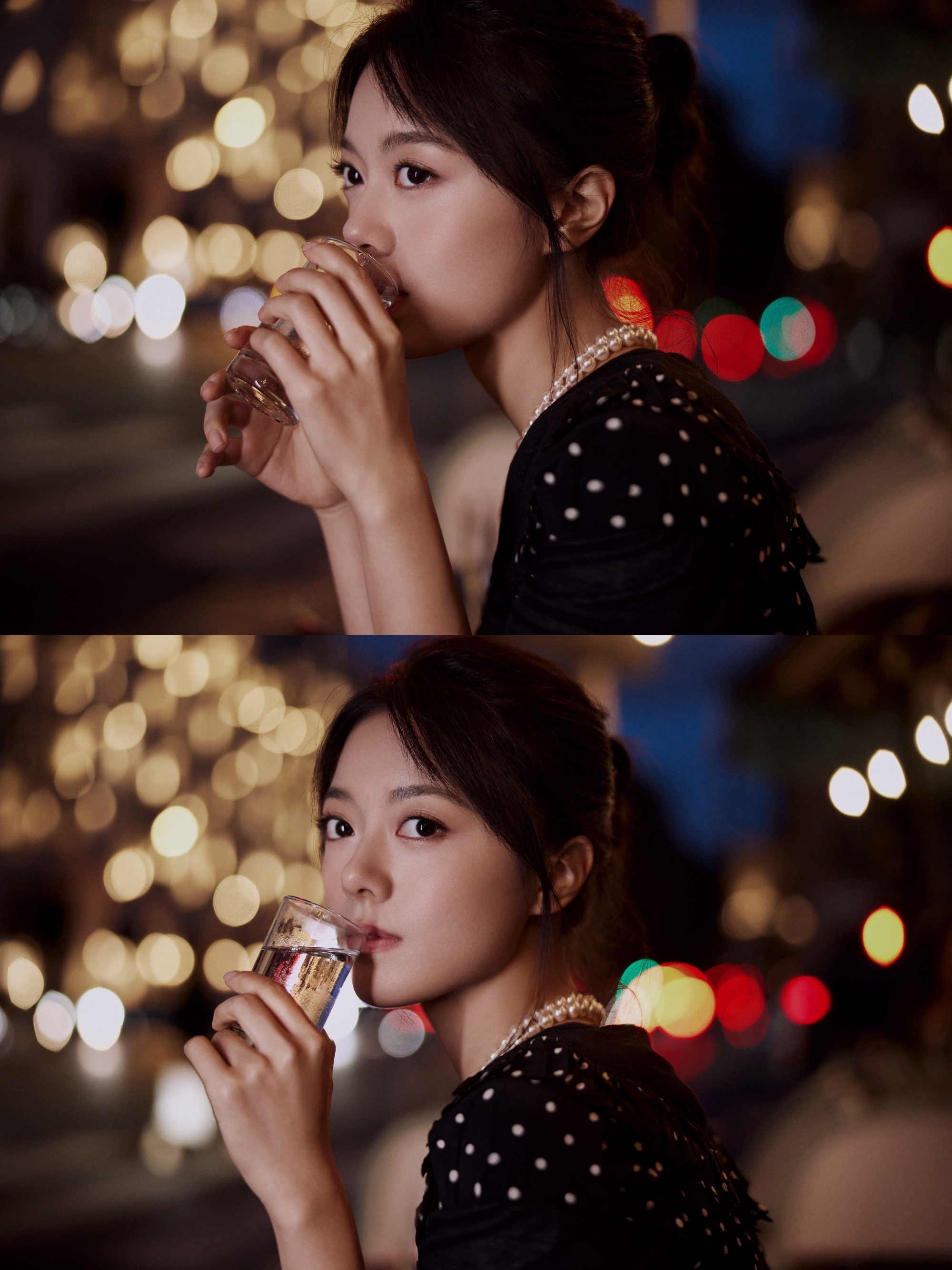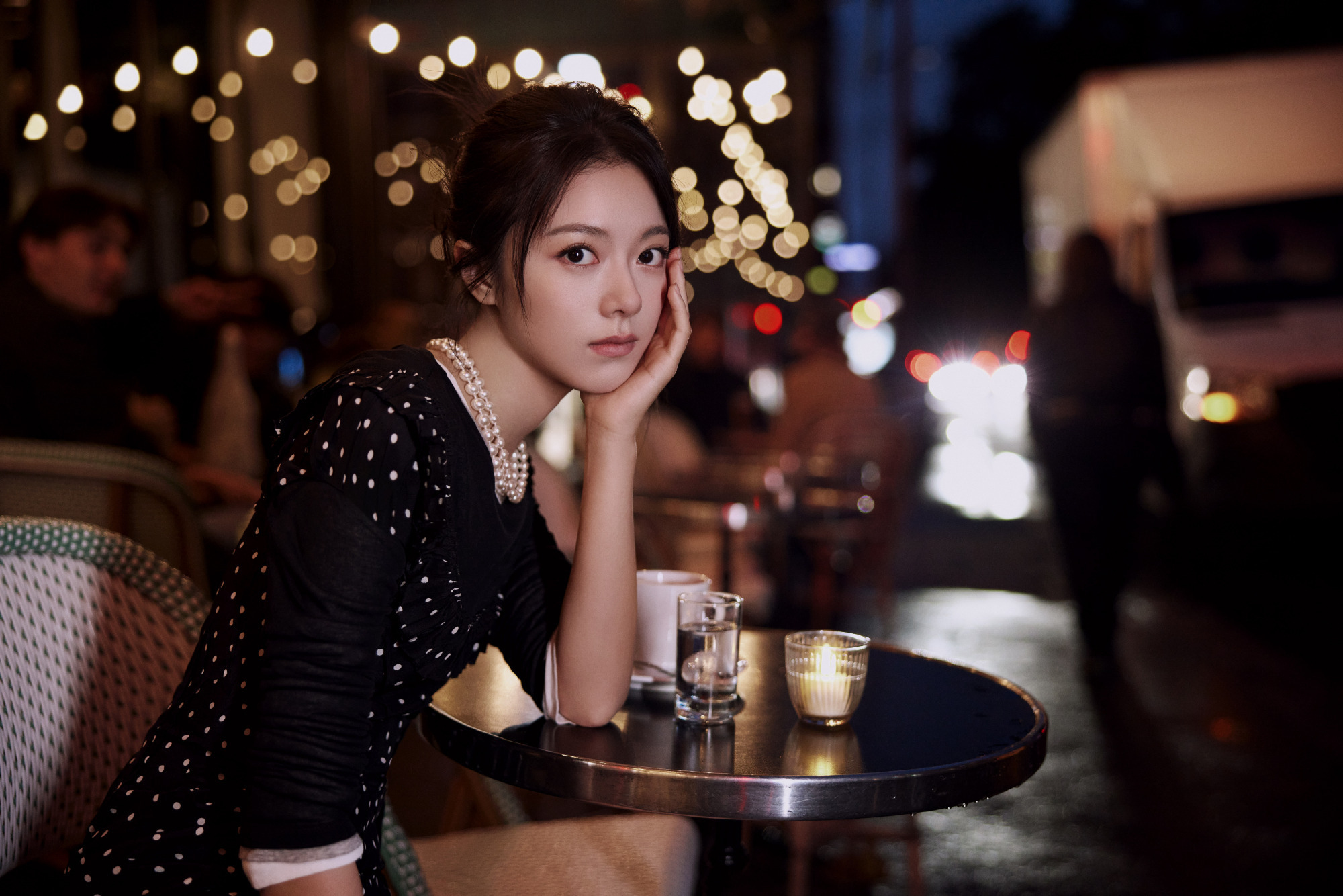赵今麦时装周街拍,波点黑裙,静谧诗意,浪漫延申