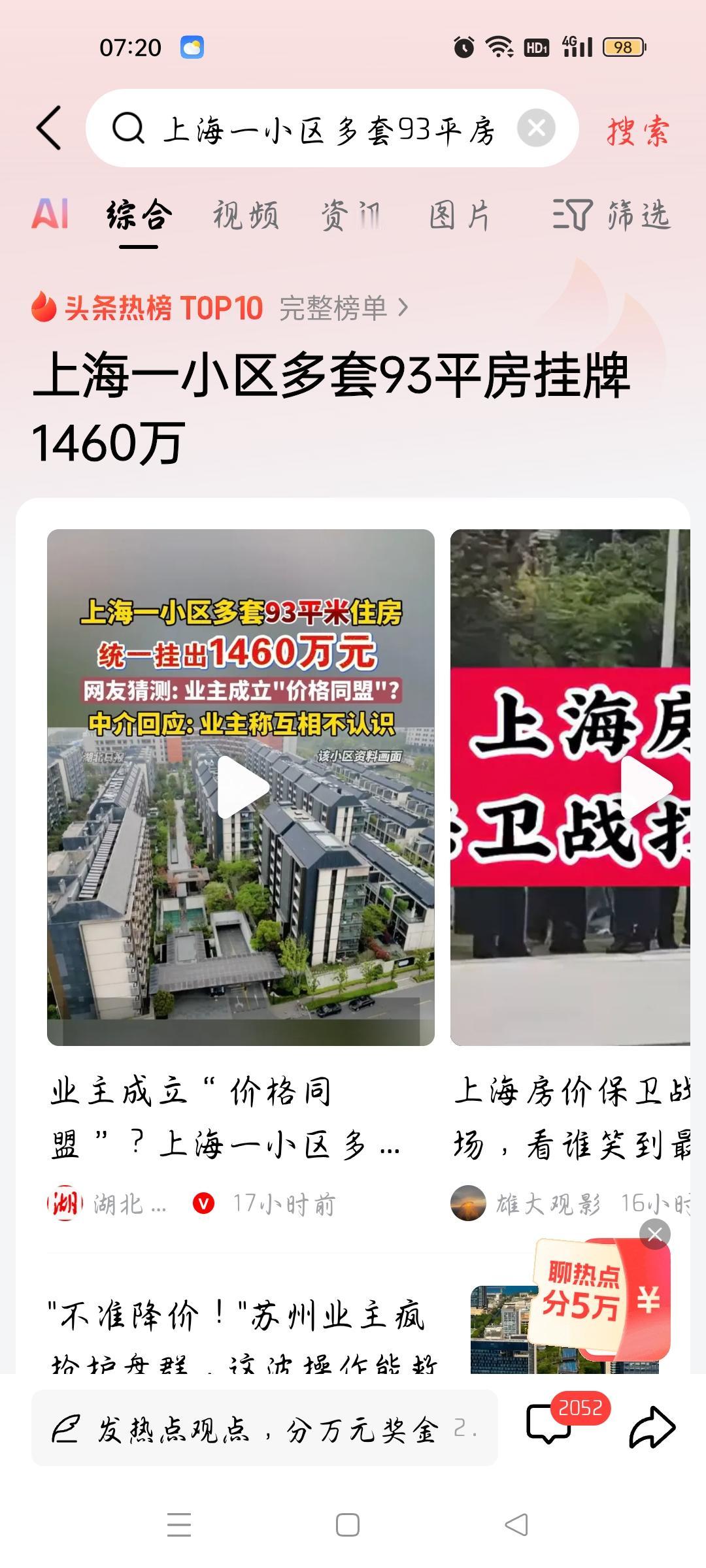 上海一小区多套93平米挂牌1460万元,我想说 据湖北日报报道,上海一小区多套93平米挂牌1460万元,网友猜测:业主成立价格同盟,中介回应:业主称互不认识,我想说,这一小区挂牌1460万元,从业主考虑,值得,不过现在房价在跌,不过,上海的情况好点,不过,个人认为,业主挂牌这么高,有人来买吗?记住,房子是用来住的,我不知道是否是学区房,还是有其他投资价值,如果没有,就是有价无市,挂牌就是希望交易,交易不成功,只会成为笑柄。各位条友觉得呢?