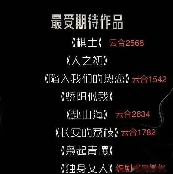 其实这个榜单期待也正常,🐧就这些卖相不错的,总不能说不期待吧只能说现在长剧80%都播的不行了