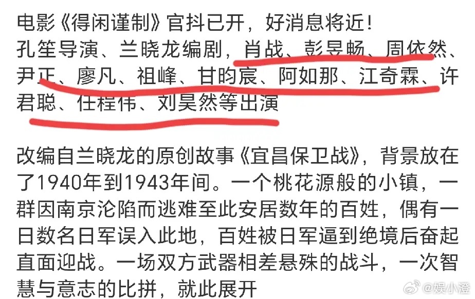 哇塞!肖战和彭昱畅的新电影要突然上映啦!《得闲谨制》在抖音上冷不丁就开通了官方账号,这电影之前一点风声都没透出来,突然冒出来说要上,估计肖战自己都懵圈啦。现在网上传12月上半月就要和大家见面,这个档期可有点悬啊,前面有《疯狂动物城》,后面还有《阿凡达3》,压力山大呀。我之前一直搞不懂《得闲谨制》这名字啥意思,还以为是文艺片呢。结果一打听,原来是抗日题材的,不过应该不是那种传统“突突突”打鬼子的战争片,具体啥样,谁都不清楚。到现在,别说预告片,连张海报都没有,神秘得不行!肖战在电视剧圈成绩那是杠杠的,但在电影圈还算新人。电影能不能成功,得靠全剧组一起使劲,还得天时地利人和,光靠一个人可不行。大家对这部电影期不期待呀?
