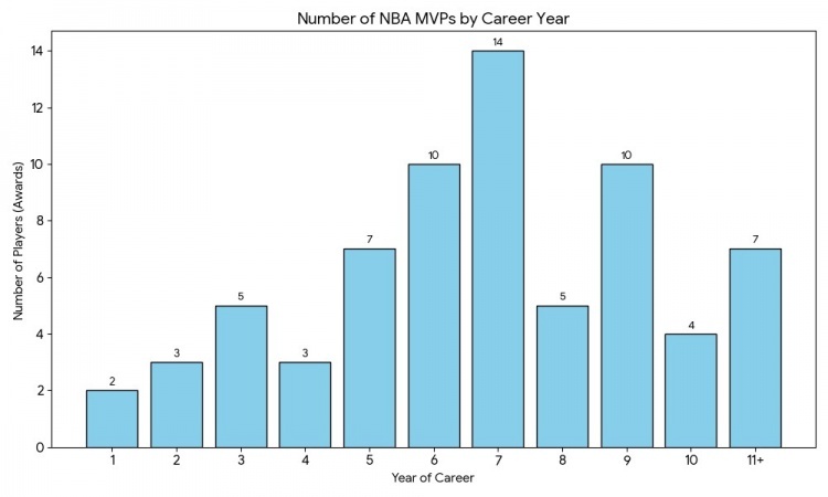 球员生涯第几年获MVP?6-9年最多 上赛季MVP亚历山大是第7年