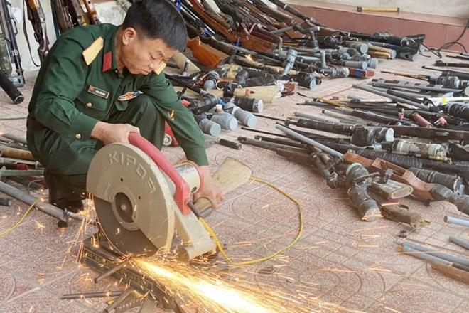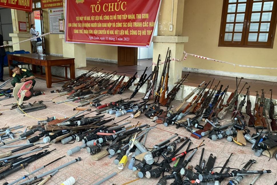 越南河静省警察社会治安行政管理局与宜春县警察局协调,组织销毁了237支枪支和许多其他辅助工具。 据此,销毁各类枪支237支,其中自制枪支6支、运动枪6支、气枪49支、自制PCR枪4支、自制酒精气体枪172支; 4公斤铅弹、30把剑和许多其他支援工具。