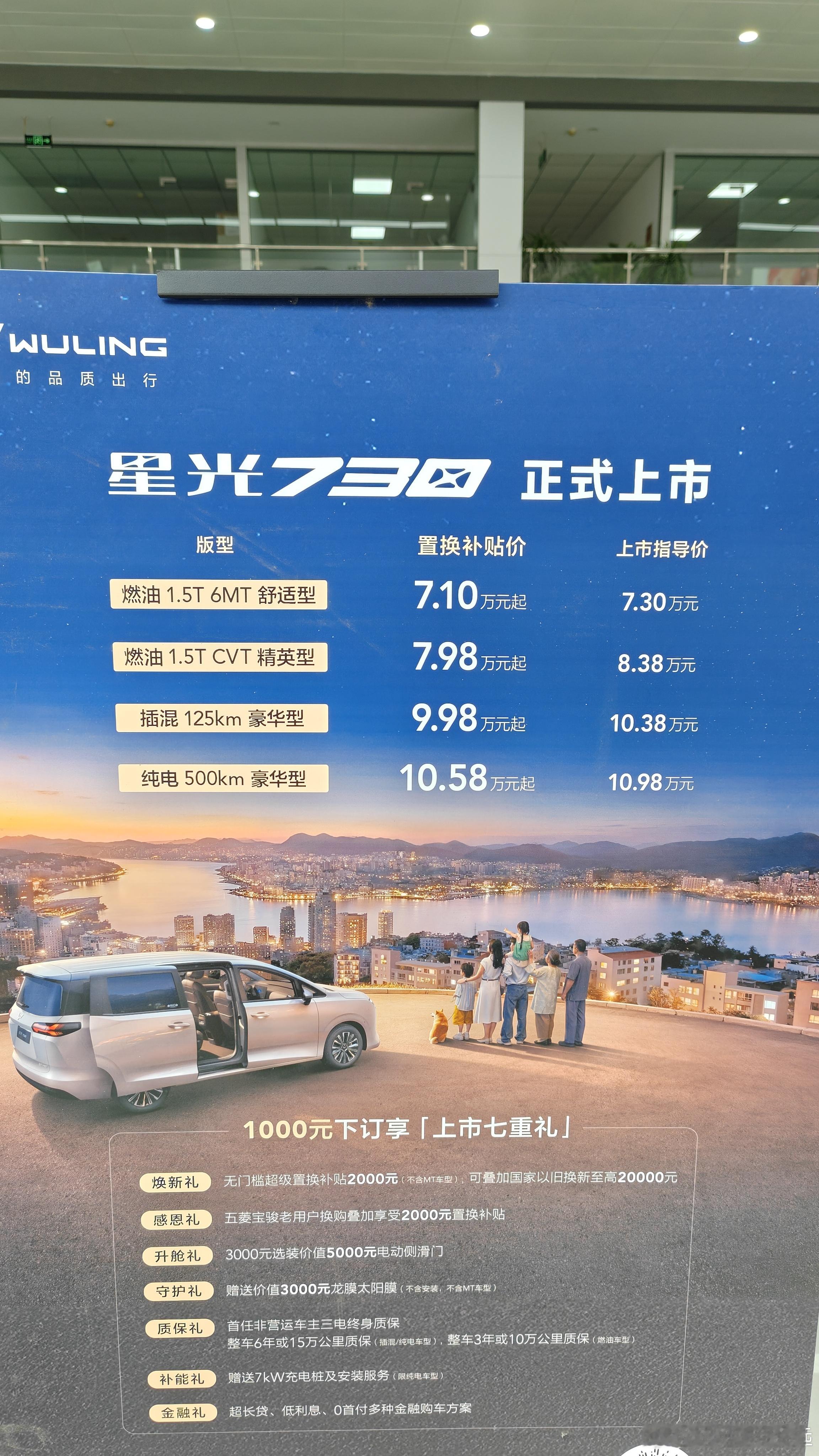 路过五菱4S店来看了看五菱星光730之前试驾时间没赶得上去一直好奇五菱是咋把大7座侧滑门MPV做到七八万的看了看实车质感确实强,这个价位来说获得感很强