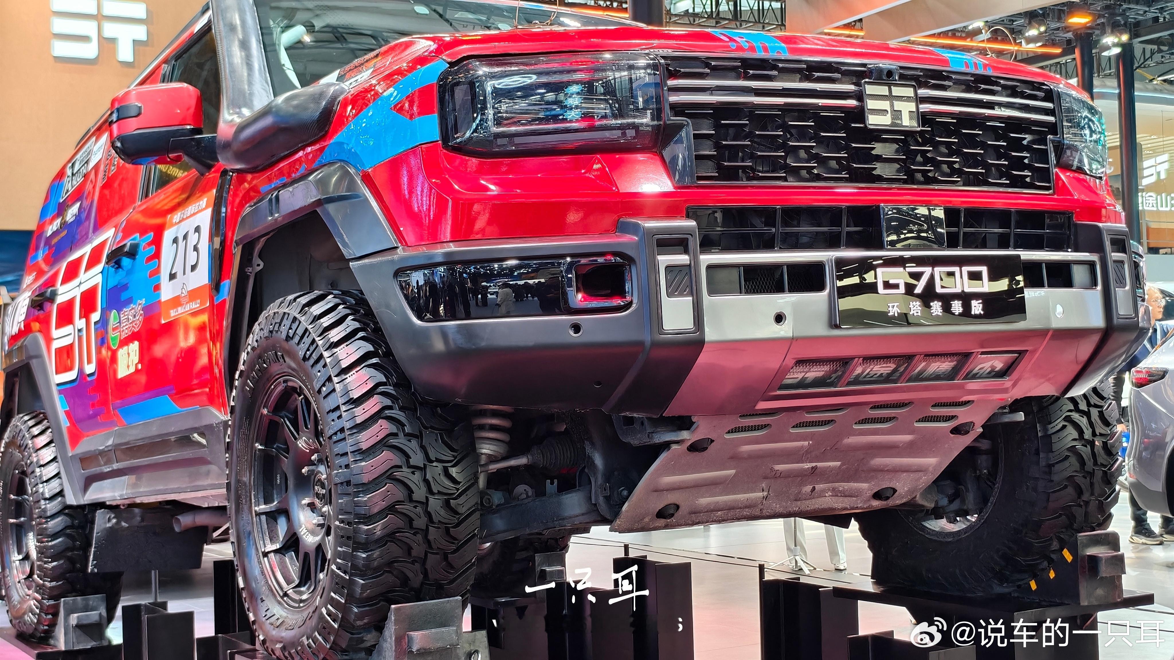 纵横在本次 上,纵横展出了纵横G700环塔版、环塔赛事版、至尊航行版、智境乾崑版及顶火版,其中G700环塔版上市:33.49万元—35.49万元。环塔版:5mm铝镁合金底盘护板、一体冲压成型与矩阵加强筋设计,重量较传统锰钢护板降低15%,整体强度提升30%,可承受210MPa冲击,耐腐蚀性提升500%。配备的阿诺达64段可调氮气减震,265/70 R18全地形轮胎的黑熊轮胎。另外这次终于见到了航行版,车尾端的推进器真的很“夸张”。