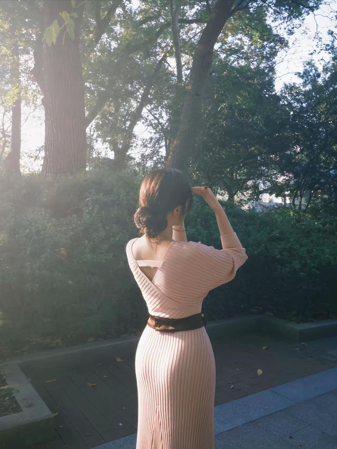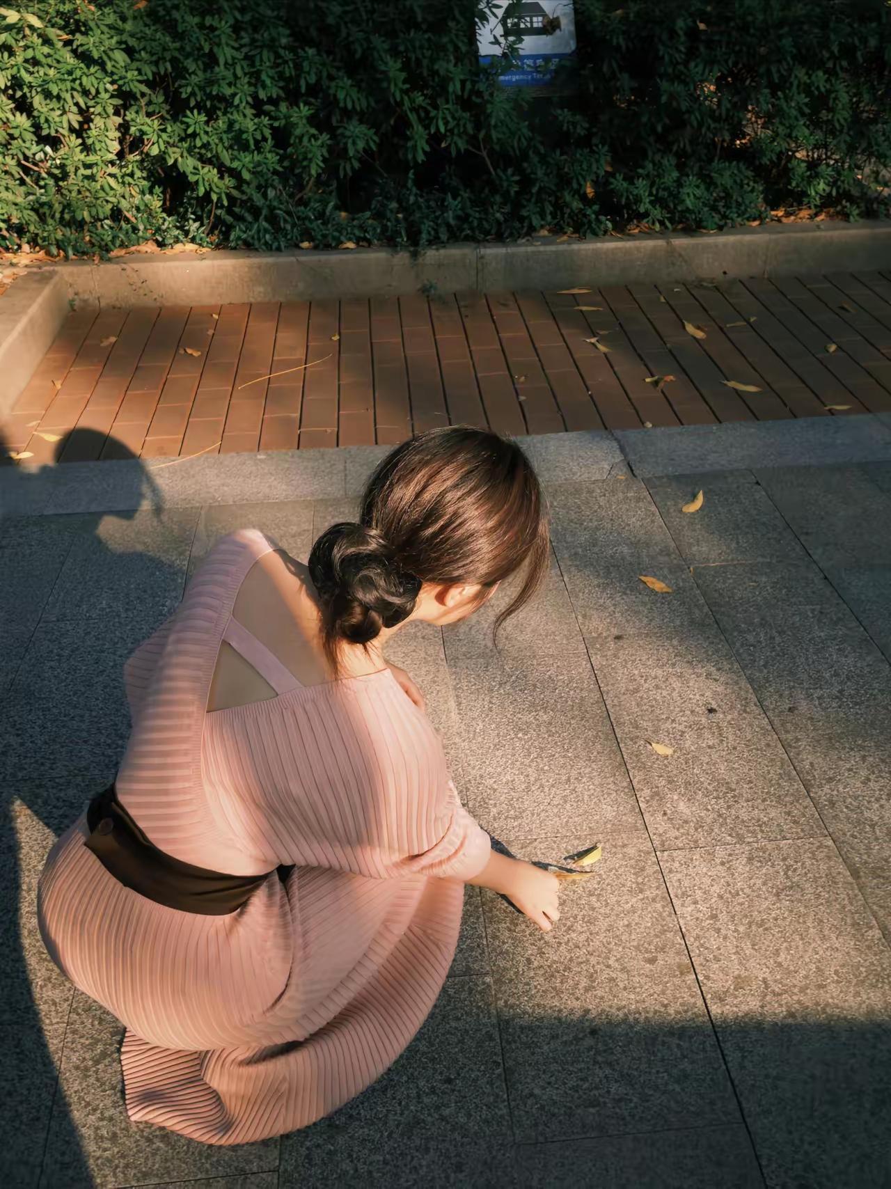 把光阴揉成了蓬松的光,落在粉调裙裾的褶皱里,也落在发梢的碎影中。 光线是最软的笔:它滤过树隙,在裙身织出半透明的暖,像将季节的温吞都浸在了纱里;人物的姿态是「未完成的舒展」——抬袖掠鬓、俯身拾叶,不是刻意的摆定,是风过时自然松弛的弧度,连影子都浸着懒意。 不必奔赴远方的景,只在街边的树影下,让衣褶承住光,让动作随呼吸轻摆,便把庸常时刻酿成了浅淡的诗意——像咬了一口温软的杏,甜意不浓烈,却缠在舌尖,是独属于「慢下来」的温柔。