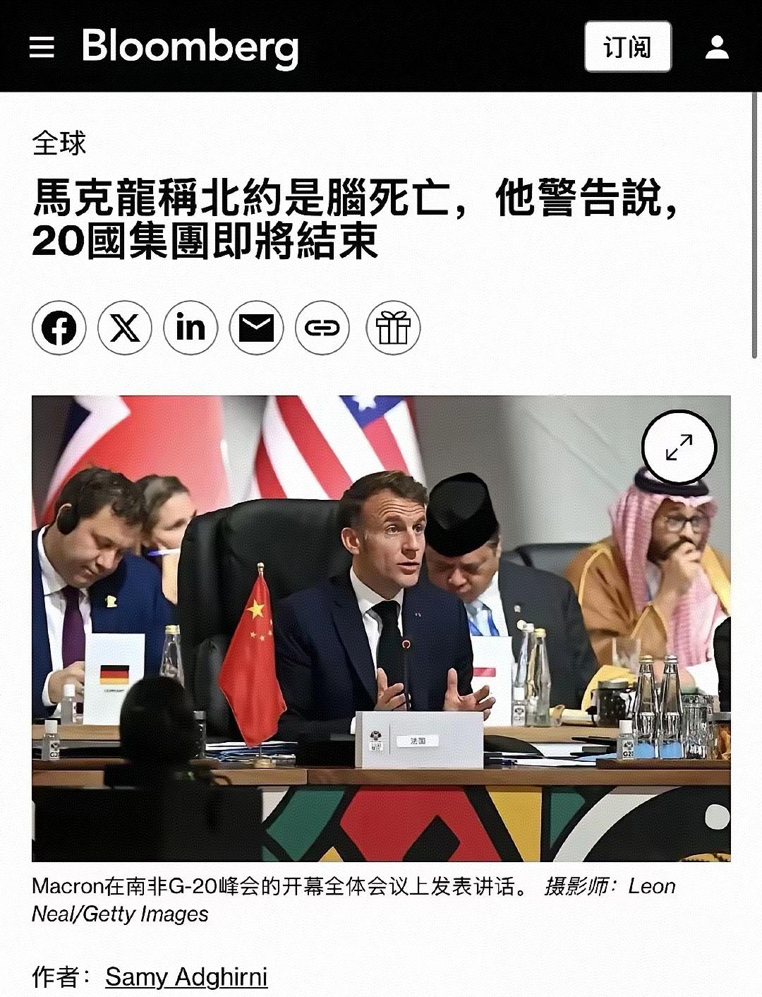 马克龙针对美版对乌28条协议称北约是脑死亡。 其实欧洲在现在这群政客的领导下,北约、欧盟迟早都得玩完。一群只知道政治正确和跟在老美屁股后面,没有了自主能力的政客,已经让本可以成为世界一极,经济、军费投入远比俄罗斯大得多的欧洲,慢慢沉沦了。 这群政客下的欧洲,甚至不如阿三,更遑论俄罗斯了。 分崩离析也是在可预见的范围里了。