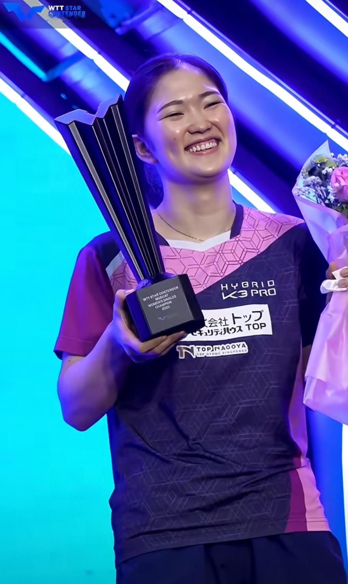 木原美悠夺冠后笑的真灿烂 11月23日,WTT马斯喀特球星 挑战赛,女单决赛中, 木原美悠4:1朱芊曦, 夺冠成功🏆! 大藤沙月在女单半决赛中负与 木原美悠,止步四强! 金娜英负于朱芊曦, 止步四强! 张本智和兄妹没有参赛, 很久没有比赛的木原美悠抓住机会, 一举夺得冠军🏆! 朱芊曦因此获得wtt总决赛的 参赛资格!