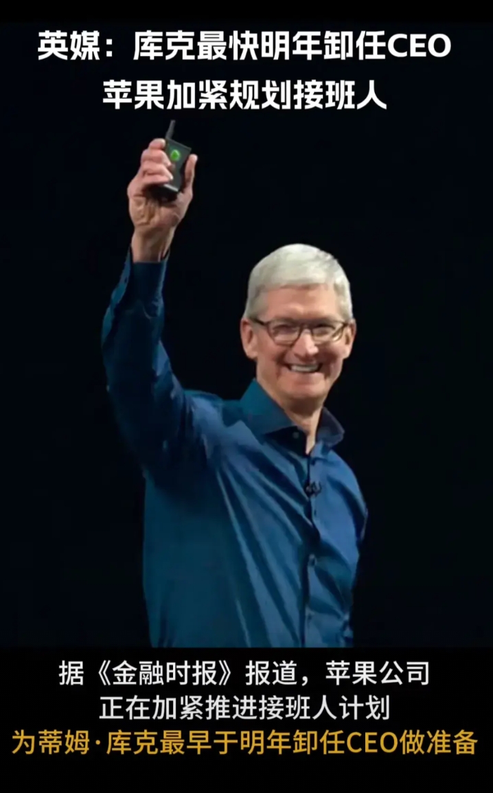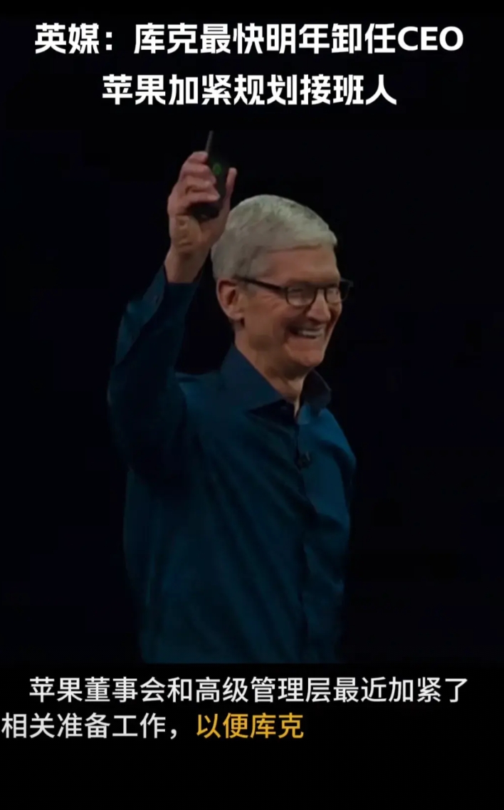 苹果下一任领头羊会是谁? 有消息透露称,苹果CEO蒂姆库克,马上就要进入卸任程序