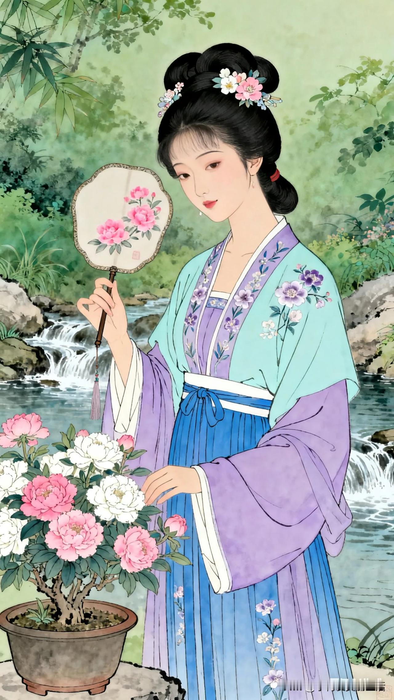 花钿美人,古韵犹存。 临摹画画分享 花饰古风照 国风花钿 花钿妆容模板 古景花