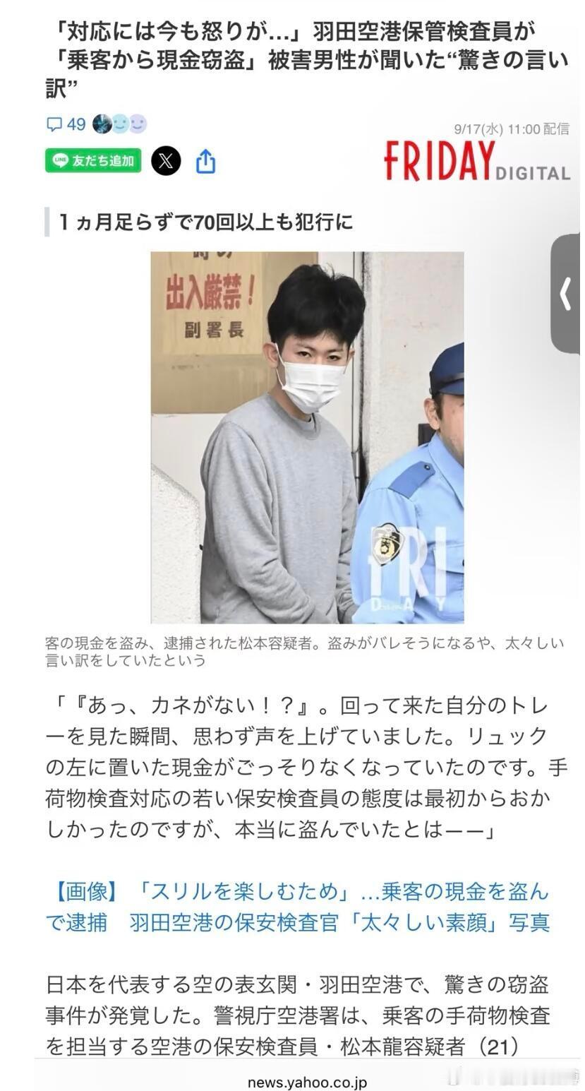 东京机场工作人员盗窃旅客财物。如图:日本东京成田机场、羽田机场多名安检工作人员多次盗窃旅客旅行包内财物请旅日游客注意贵重物品随身携带,加强看管按照最近的形势,真的别去日本旅游了……真没想到日本机场的工作人员也这副腔调……