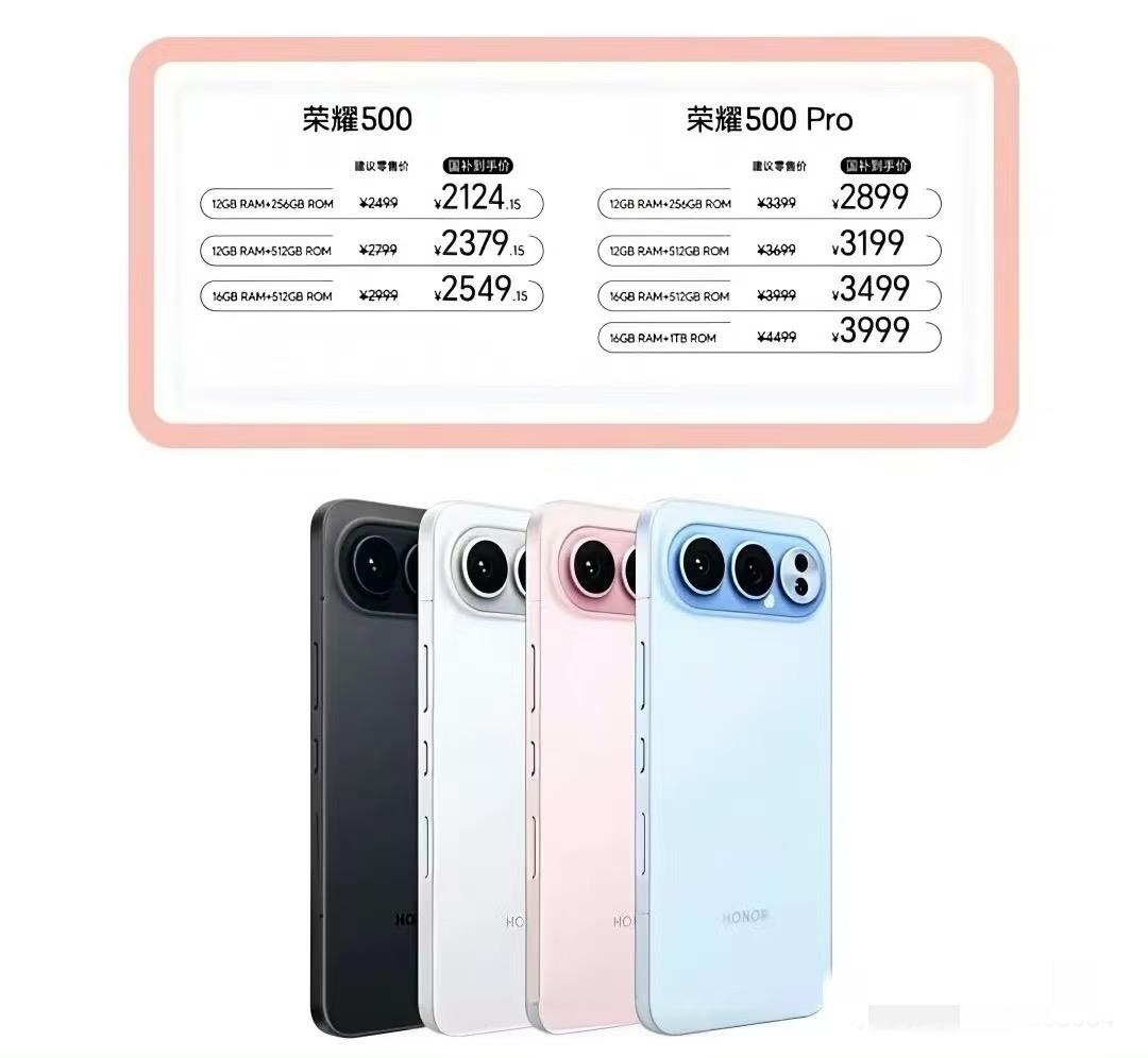 荣耀500系列价格出炉! 预计标准版2124起,pro2899起,要卖爆的节