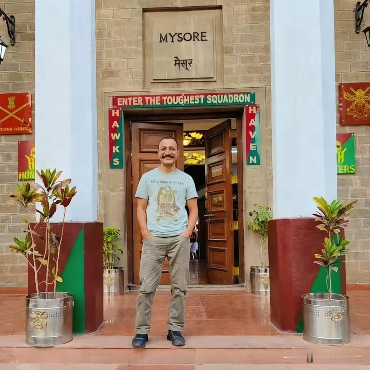 迪拜航展驾驶光辉战机坠毁飞行员生前照片爆光。 从这张照片看,纳曼什·夏尔,熬鹰中队一名中校,面带笑容,双手插兜,显得非常轻松。 背后上面“MYSORE”,即迈索尔,是印象南部一个美丽城市,也是印度熬鹰中队的在地。不过,也有网友说,SORE英语是疼痛,悲痛的意思。 门楣上:“ENTER THE TOUGHEST SQUADRON”:进入最精锐的中队 下面右边“HAWKS”,鹰,中队名称熬鹰中队。 下面左边“HAVEN”:港湾,意为熬鹰中队的归属地或精神家园。就是熬鹰中队之家。 透过半掩的门,里面灯光明亮,一派富丽堂皇。